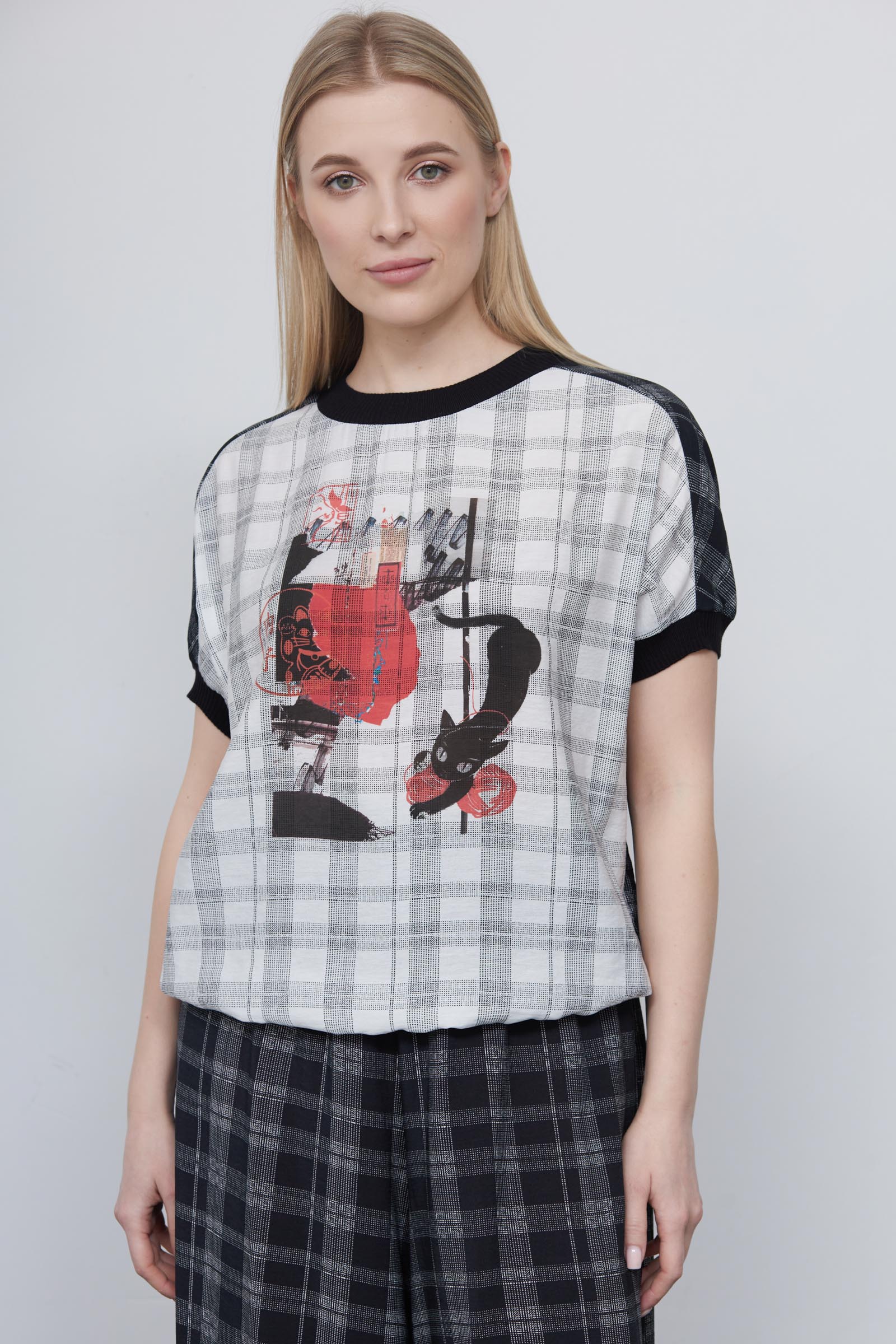 Блуза в клетку с печатью