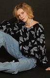 Блуза из креповой вискозы с фантазийным принтом и трикотажными манжетами.