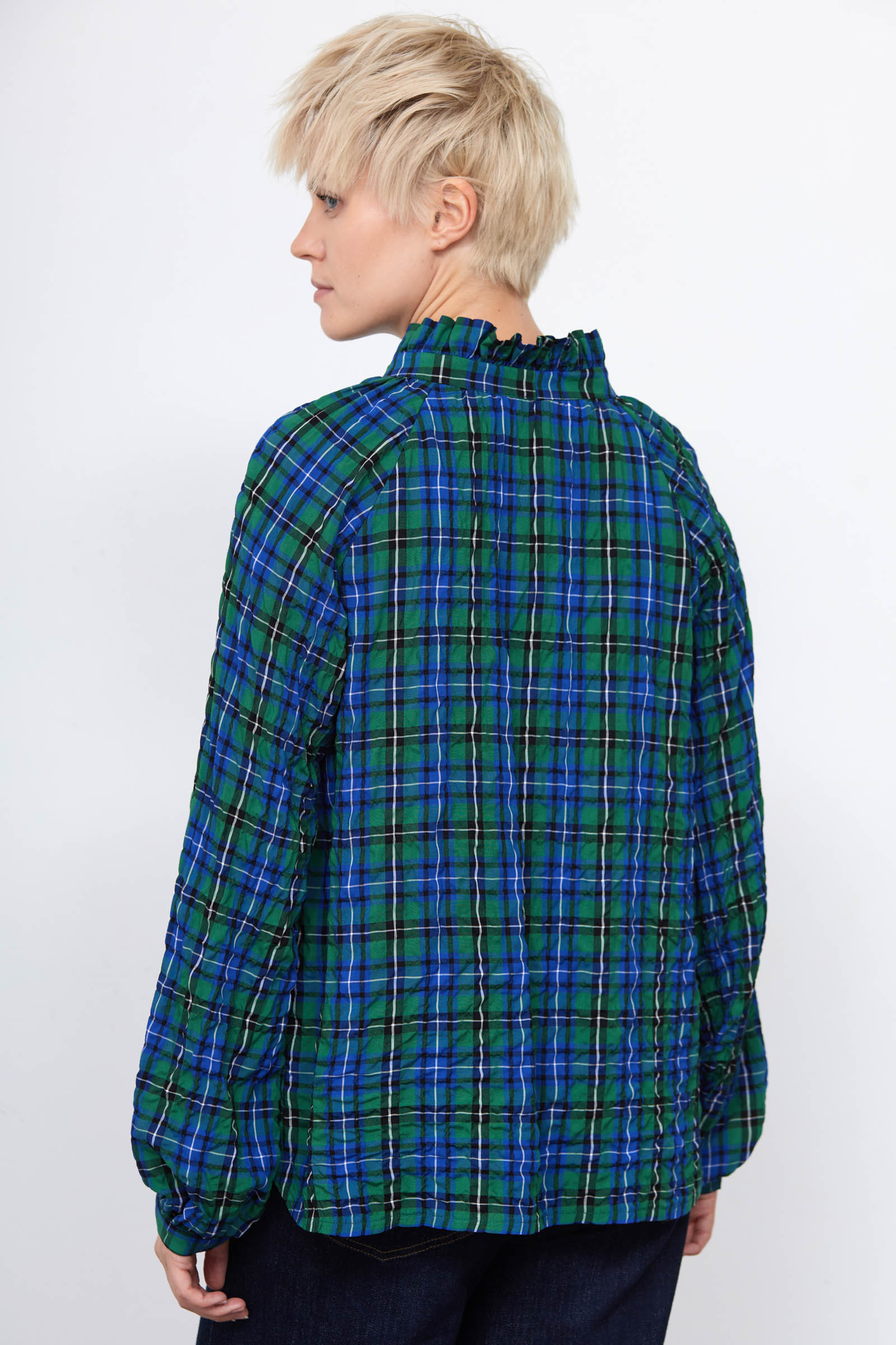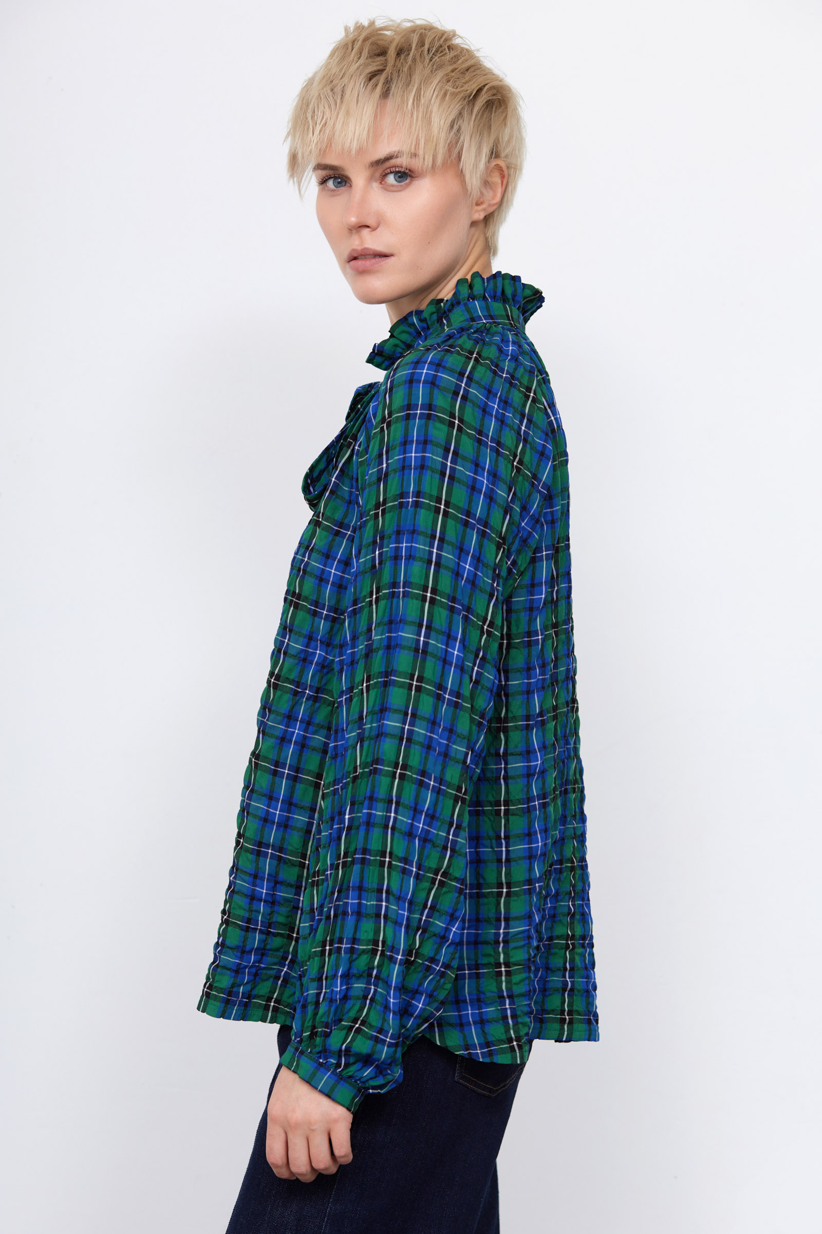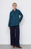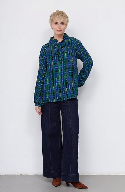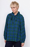 Блуза oversize из жатой вискозы в клетку с воротником аскот.