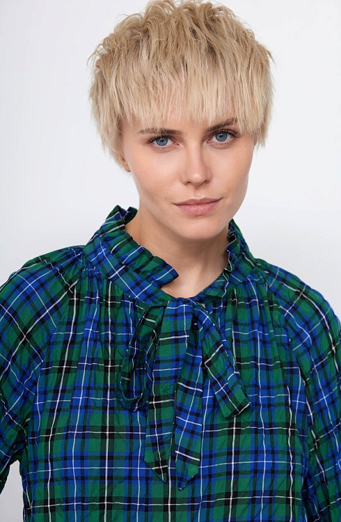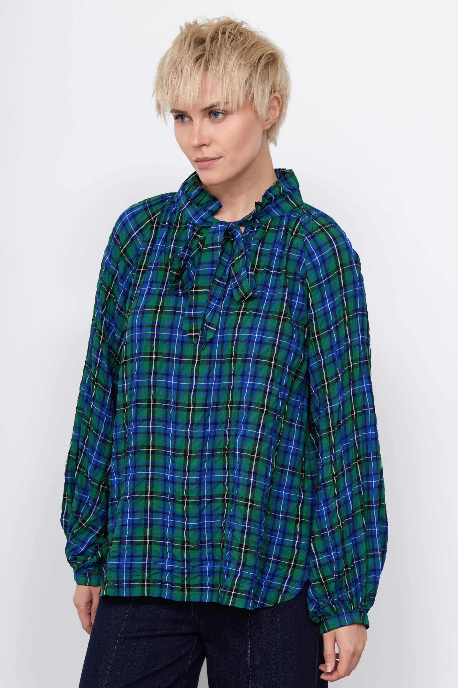 Блуза в клетку с воротником аскот