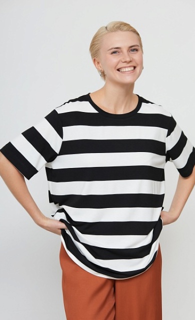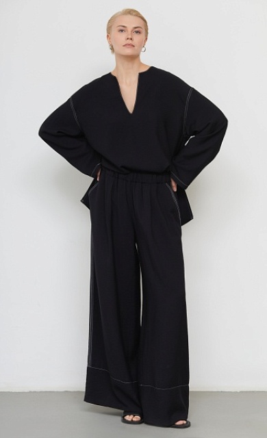 Блуза оверсайз из фактурной вискозы с контрастными отстрочками.