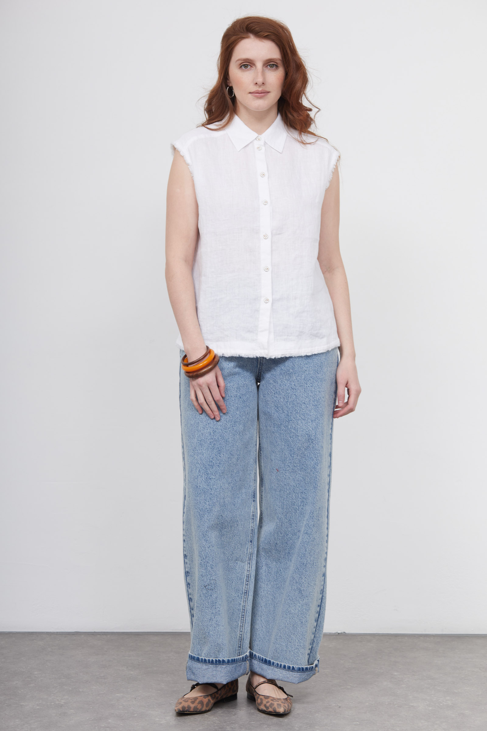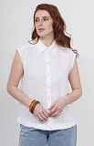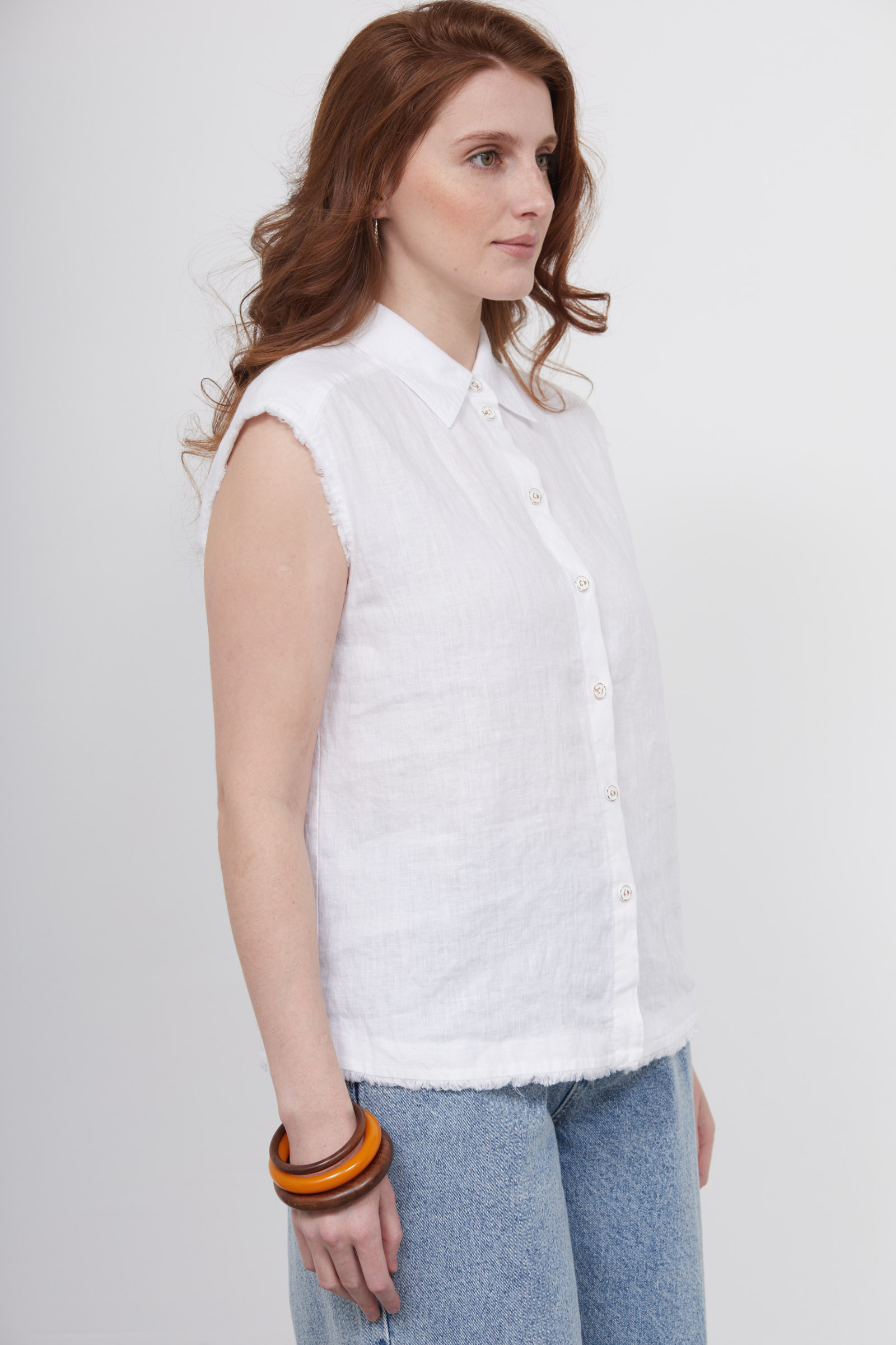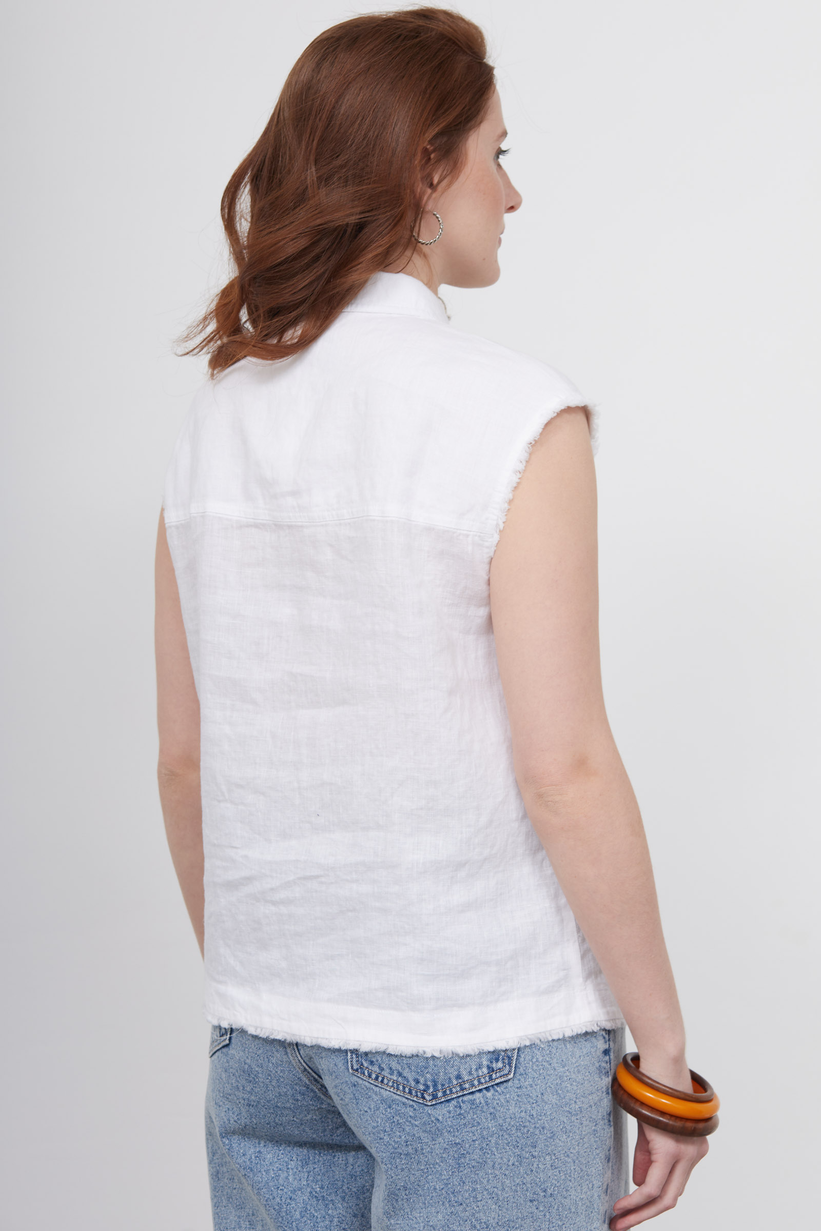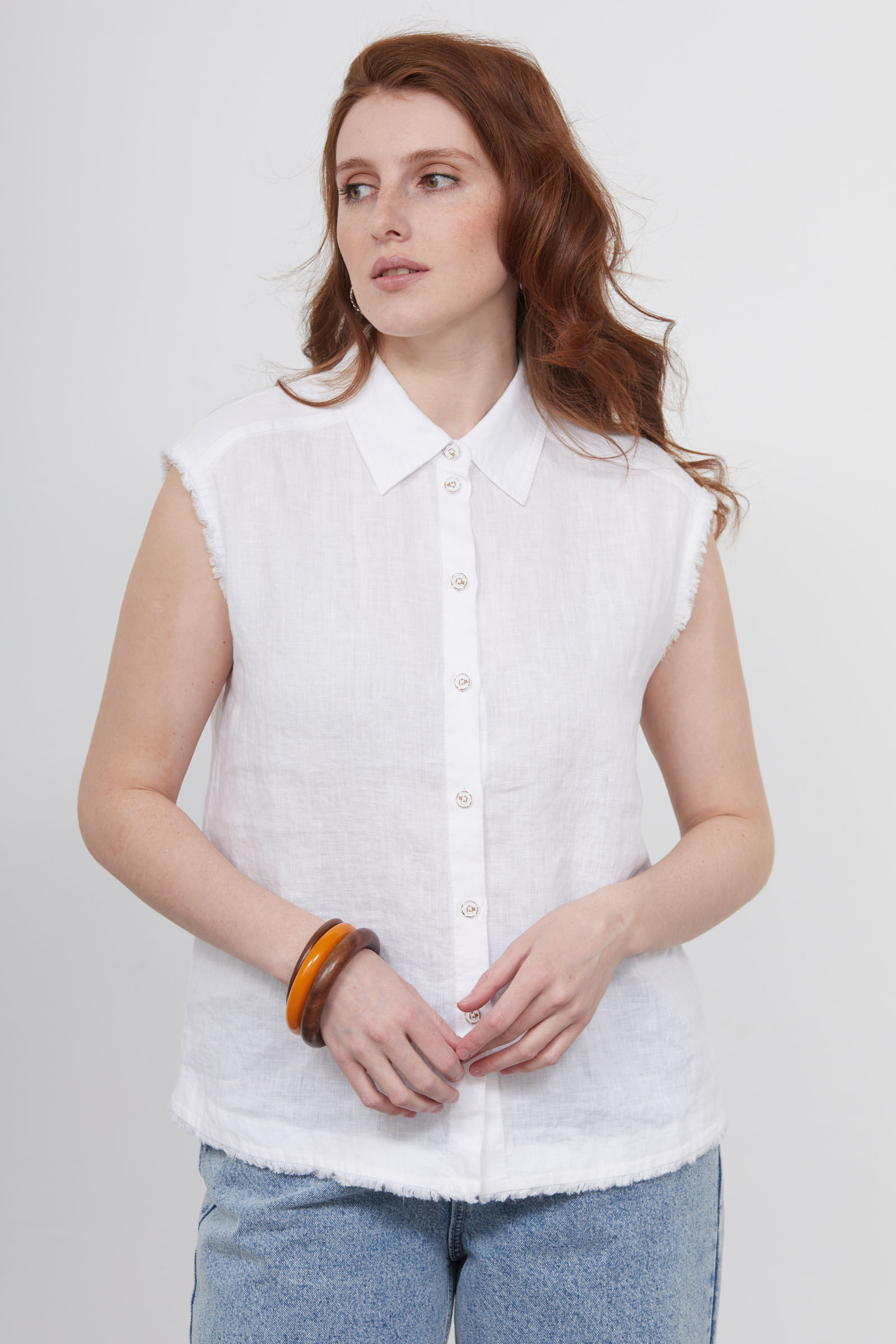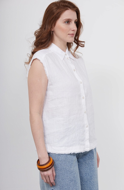 Рубашка без рукавов изо льна с бахромой на проймах и по нижнему краю.