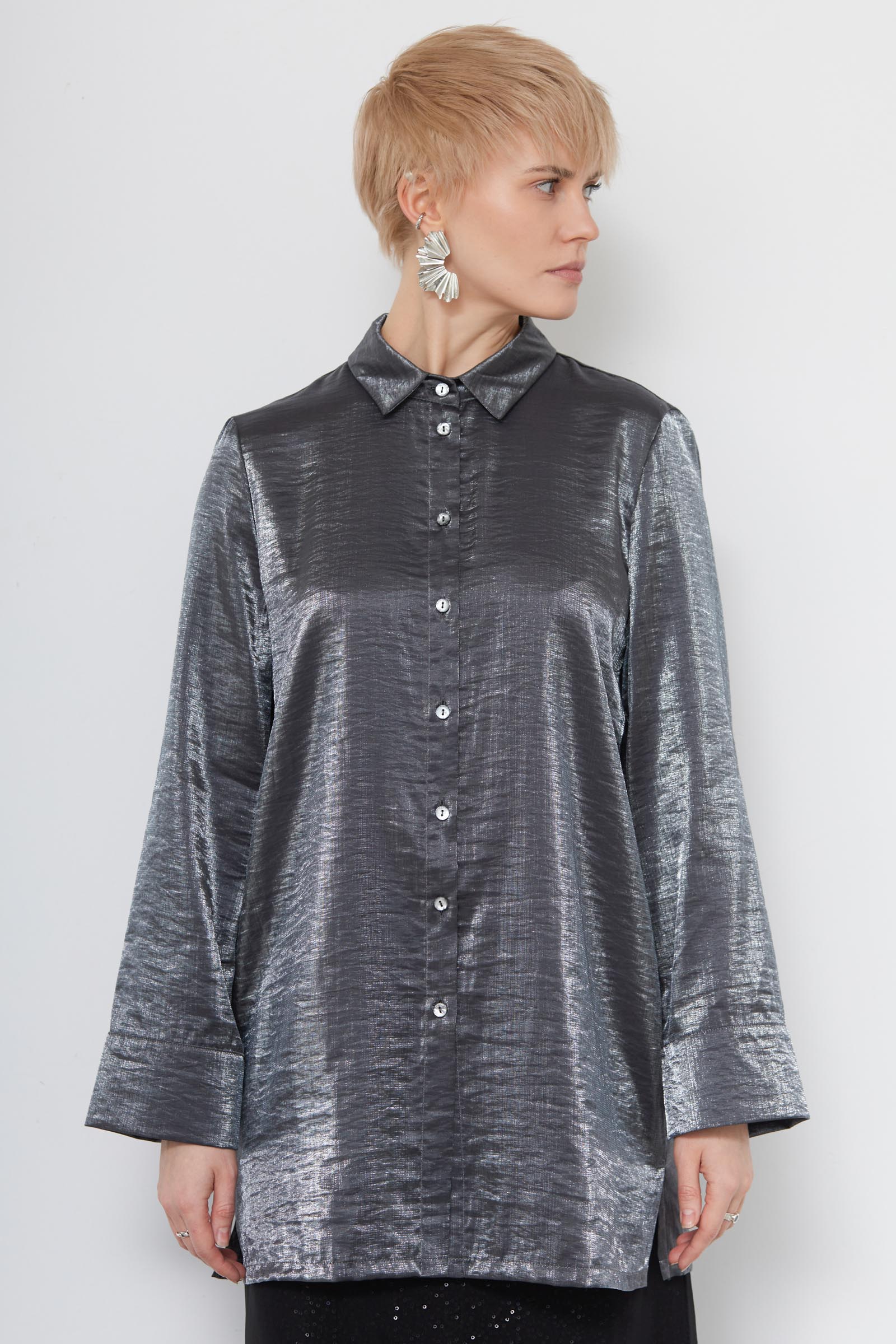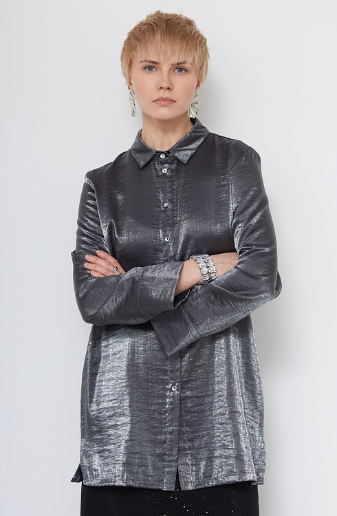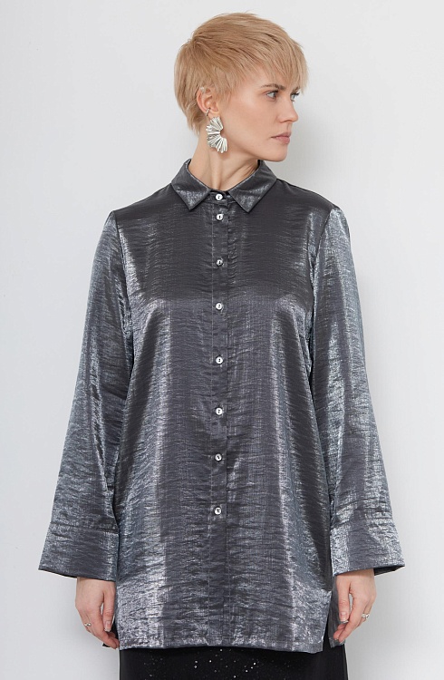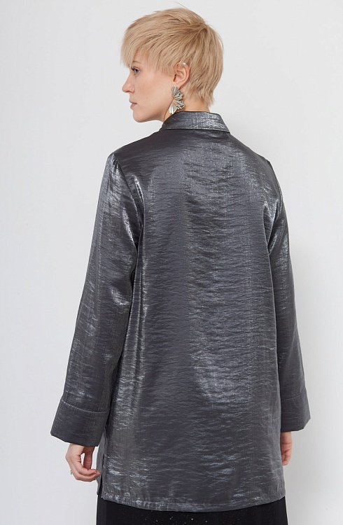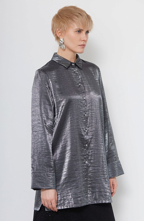 Удлиненная блузка oversize из смесовой вискозы с эффектом металлик.