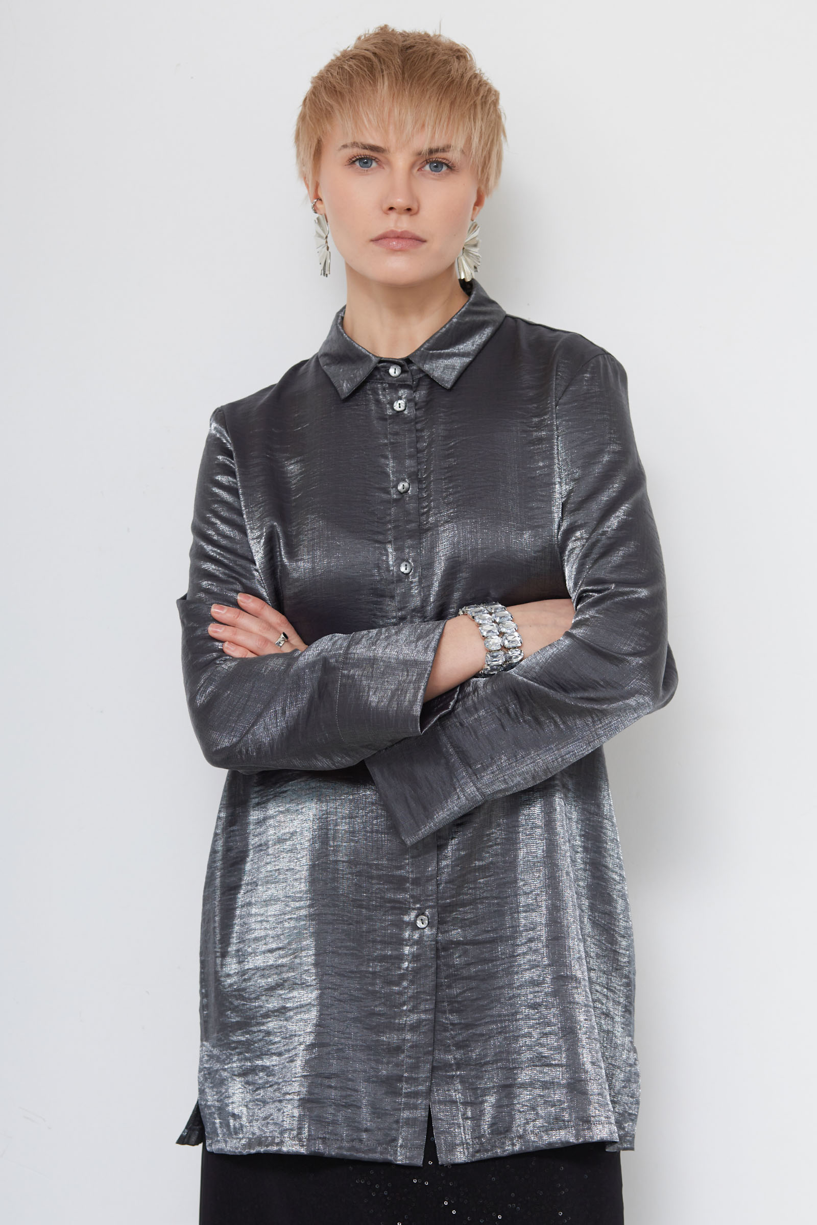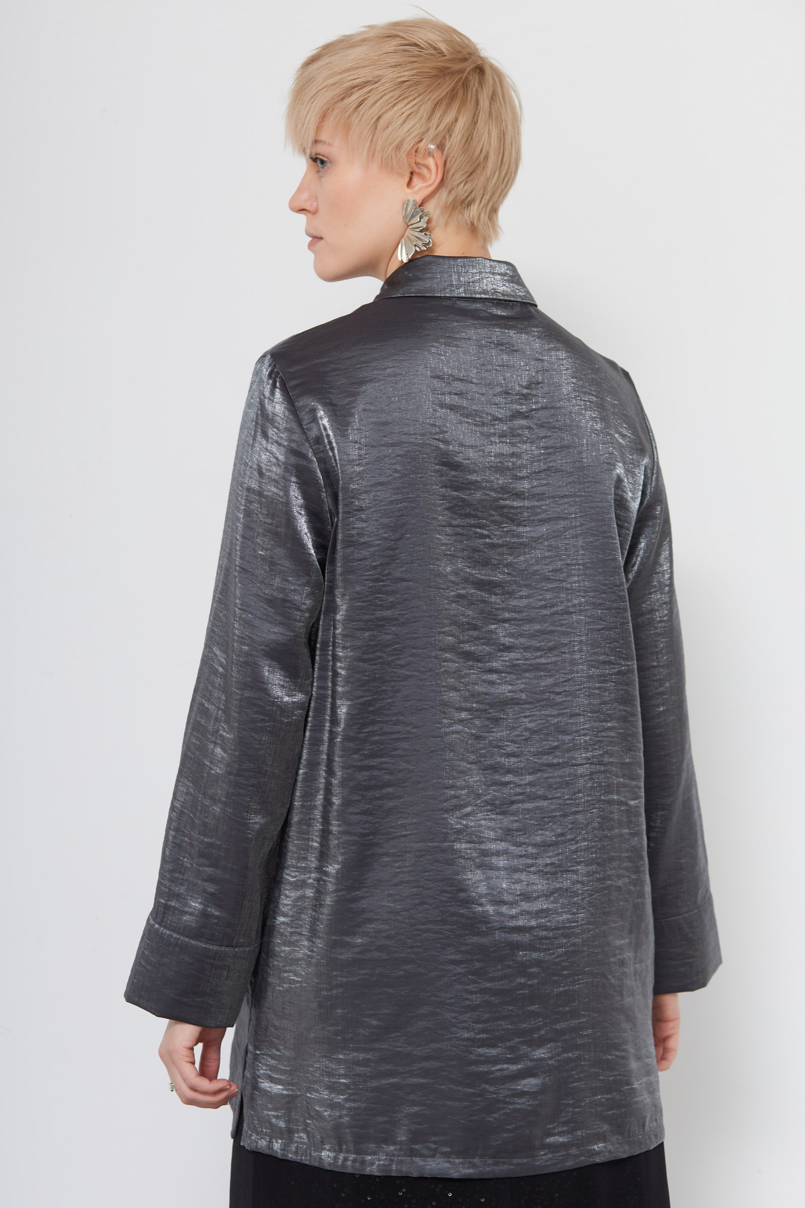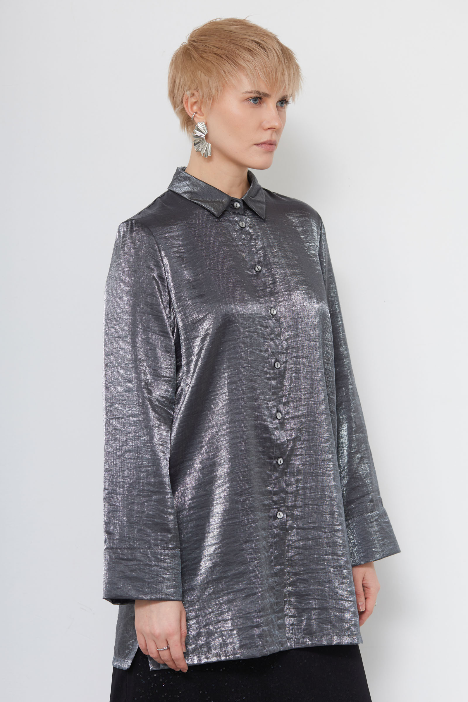 Удлиненная блузка oversize из смесовой вискозы с эффектом металлик.