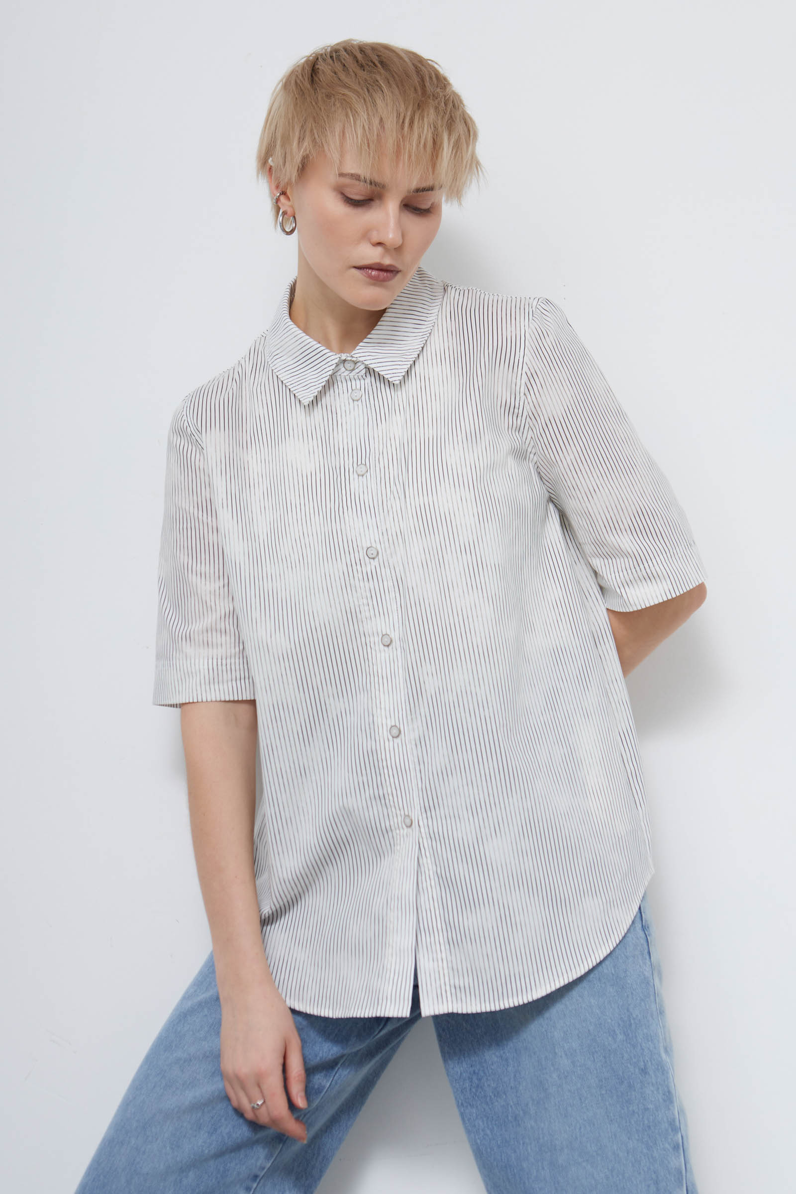 Рубашка oversize из хлопка в полоску с винтажным эффектом и короткими рукавами.