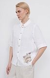 Льняная рубашка с короткими рукавами и печатным принтом спереди и на спинке.