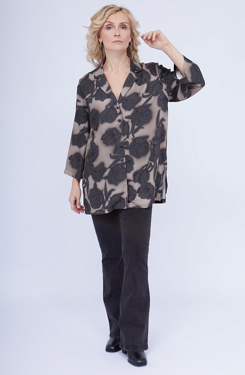 Рубашка oversize из вискозы в пижамном стиле с цветочным принтом.