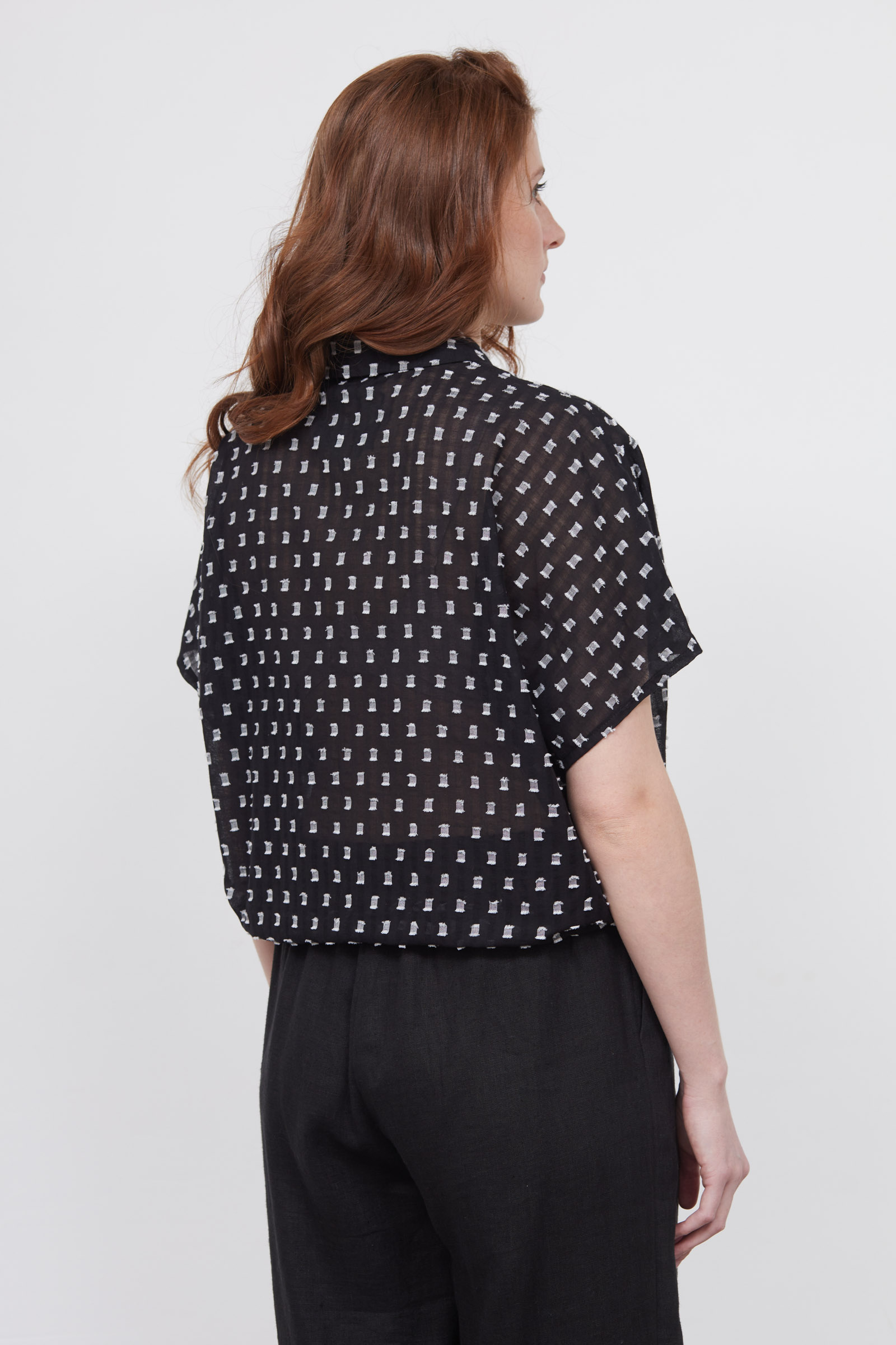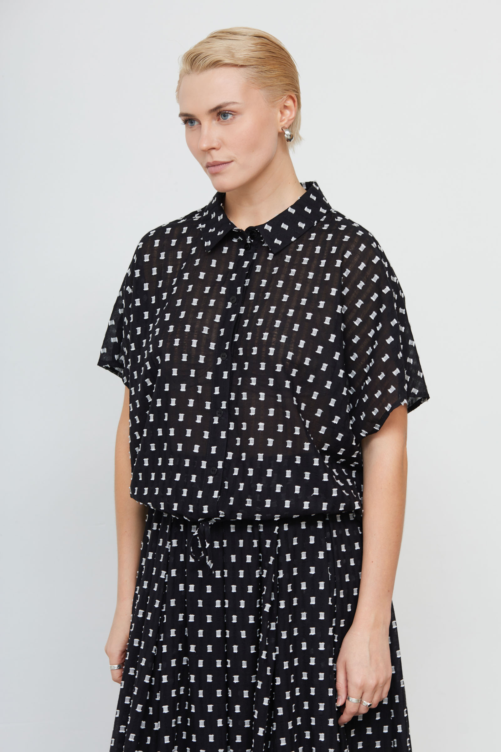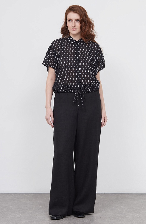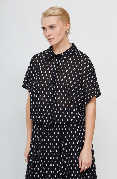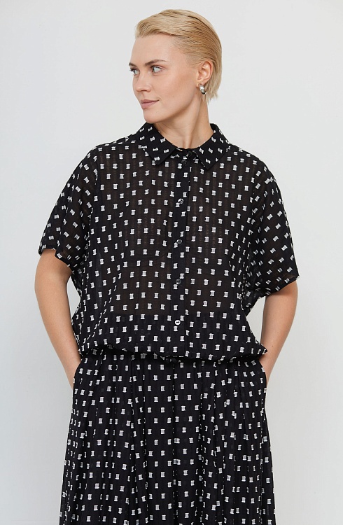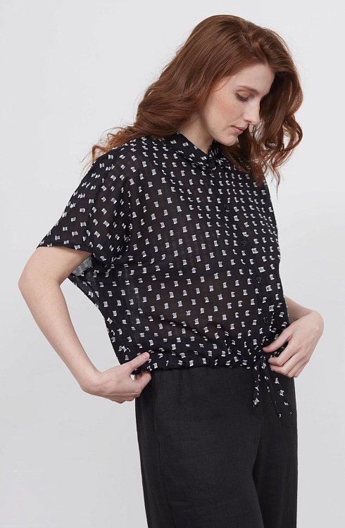 Укороченная блузка оверсайз из легкого хлопка с фактурным принтом.