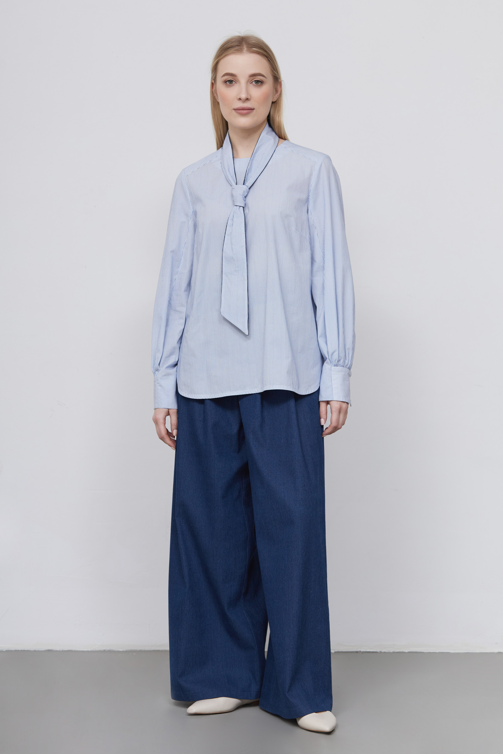 Блузка oversize из хлопка в полоску с галстуком в комплекте.