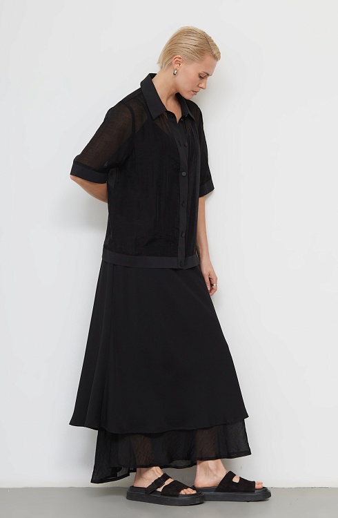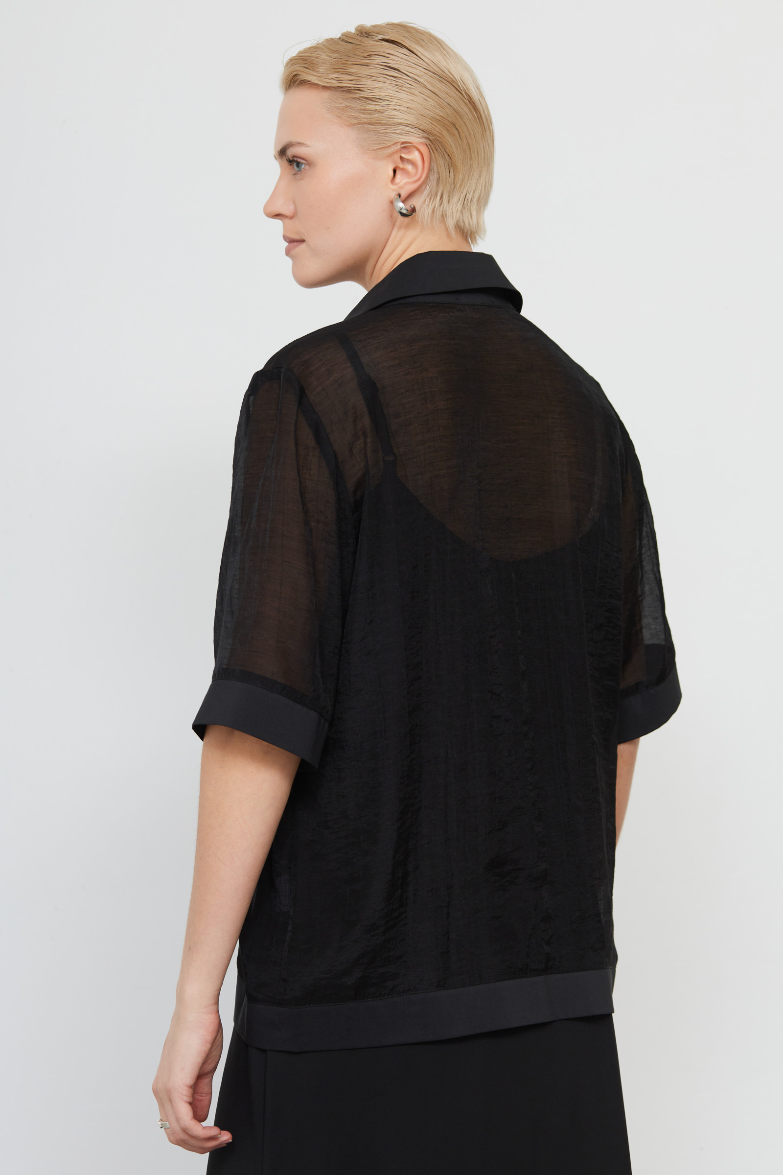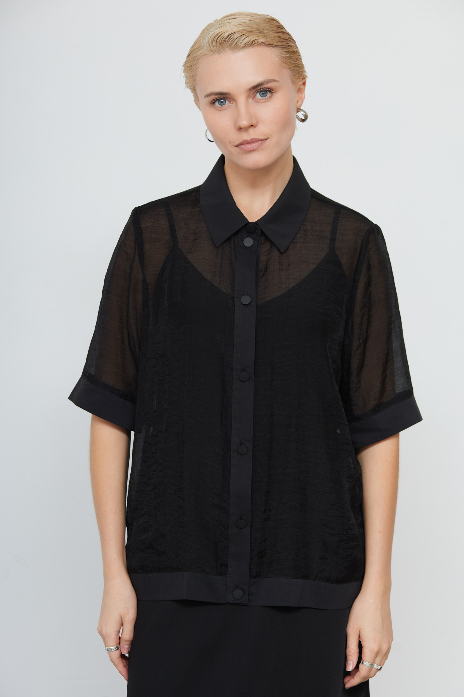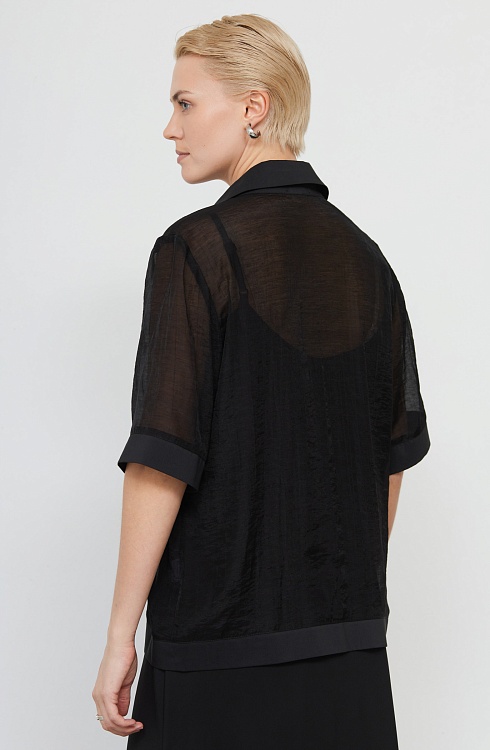 Рубашка oversize из шифона с короткими рукавами.