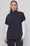 Блузка oversize из поливискозы с короткими рукавами и высоким воротником.