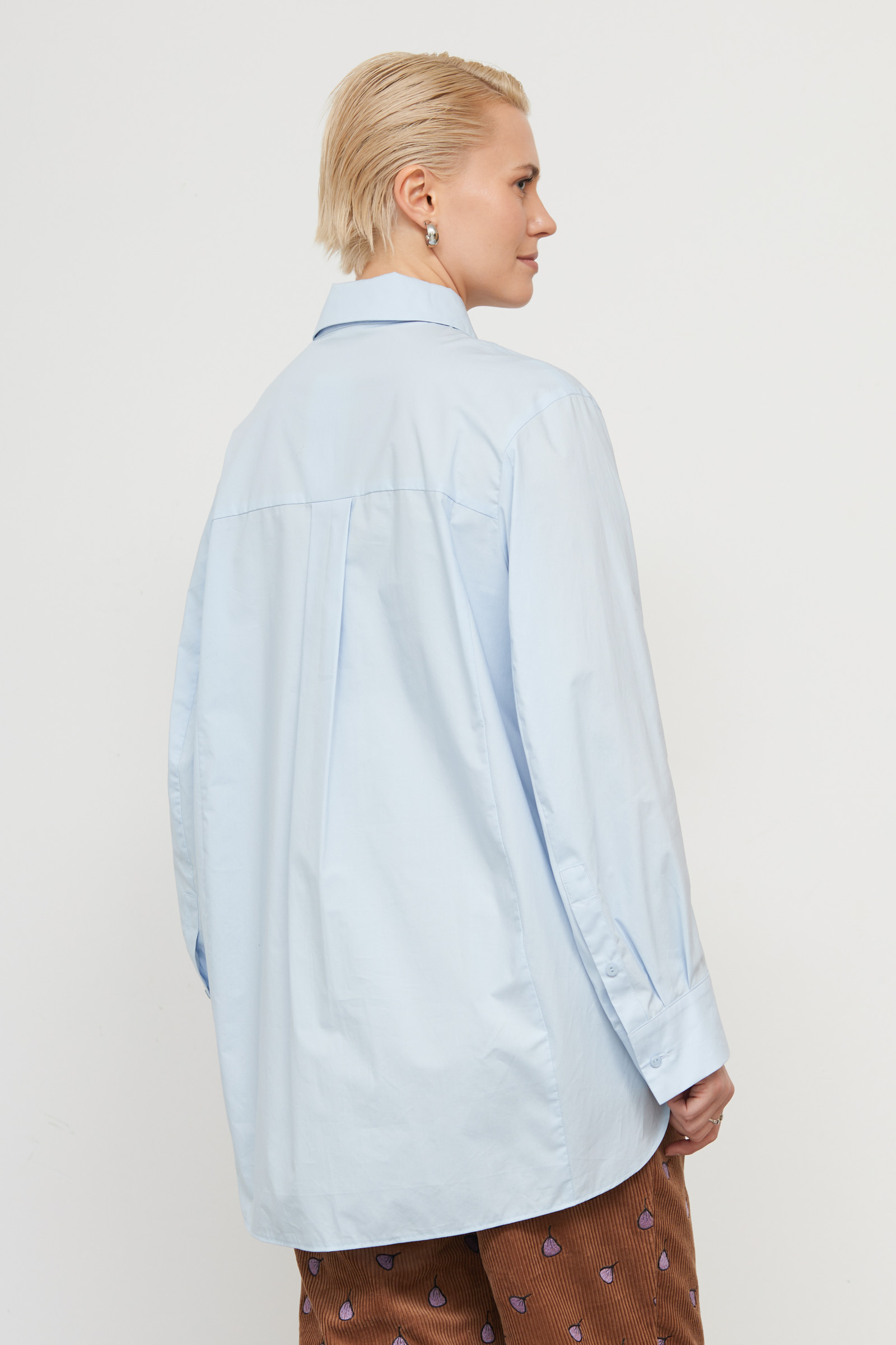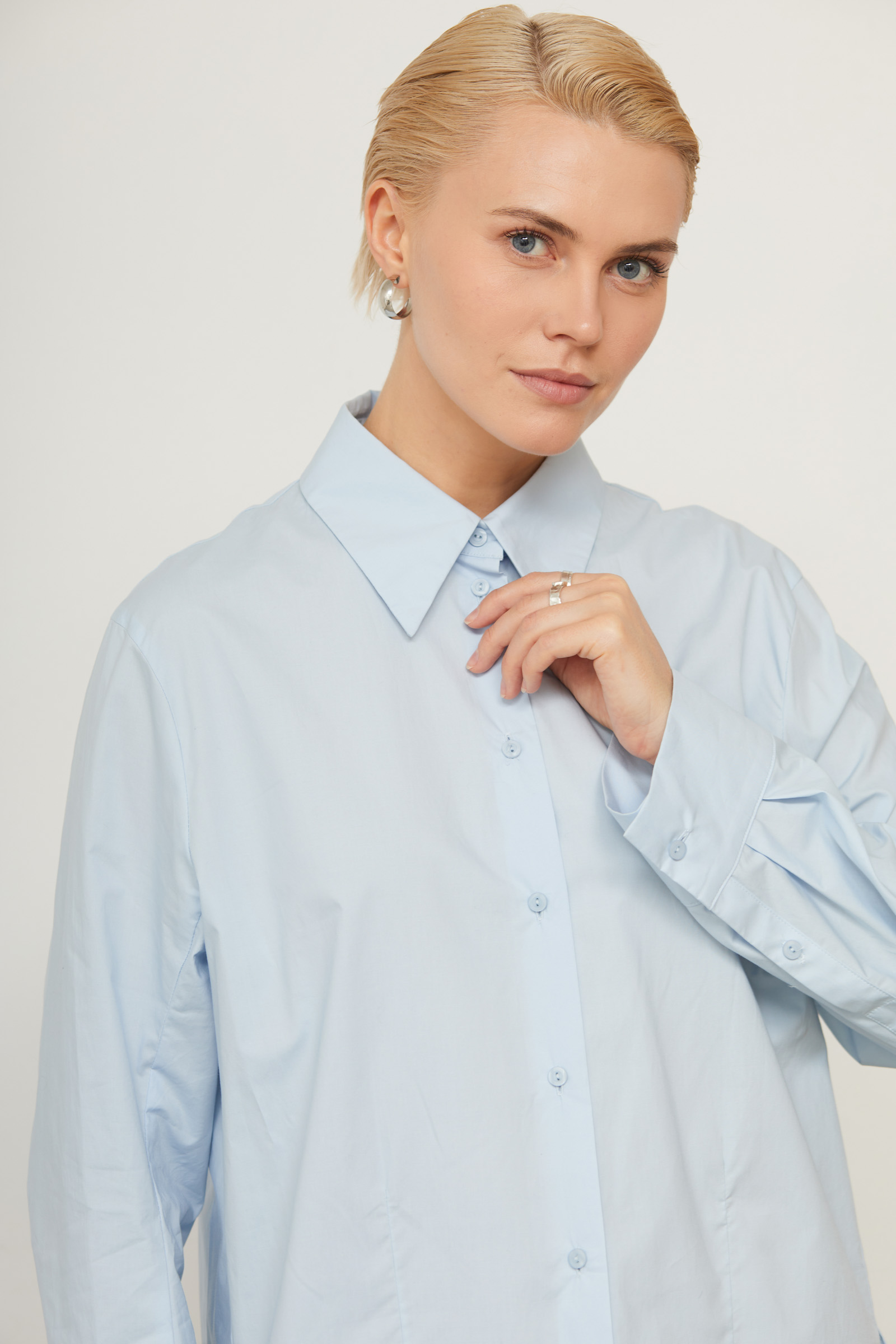 стояче-отложной воротник, рукав с манжетой, закругленный низ с разрезами по бокам