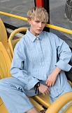 Рубашка oversize из тонкого денима с рюшами по переду.