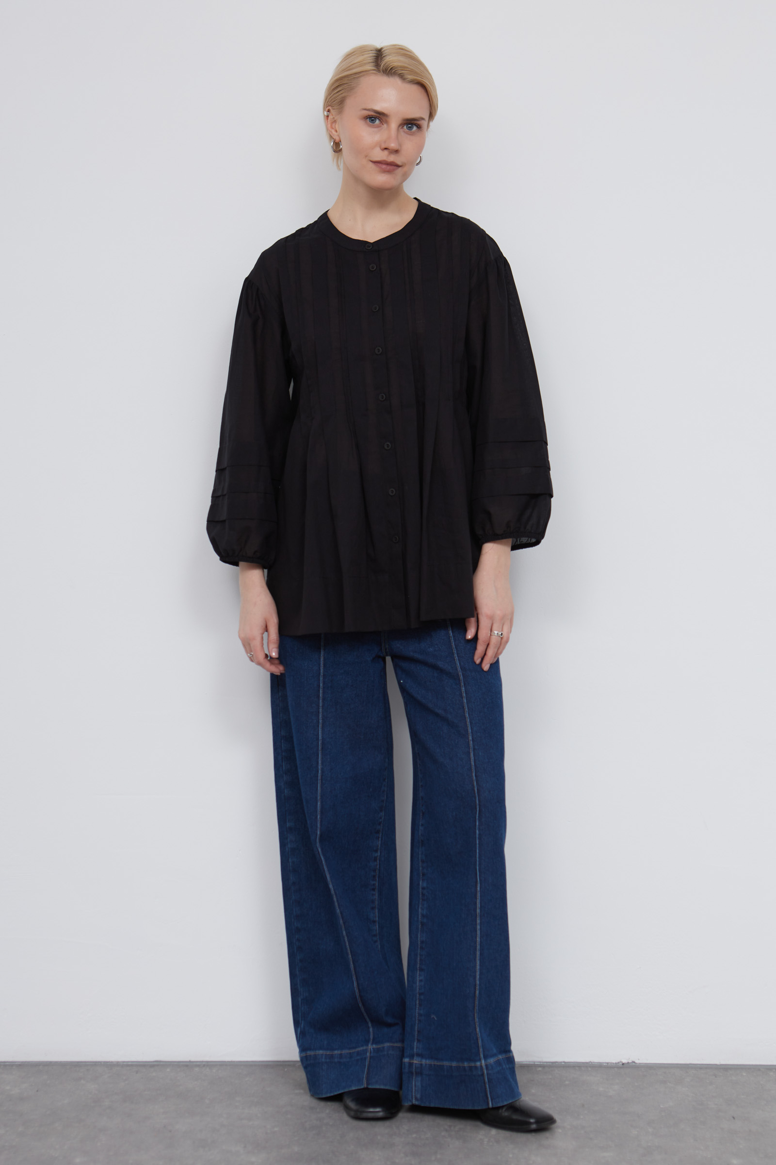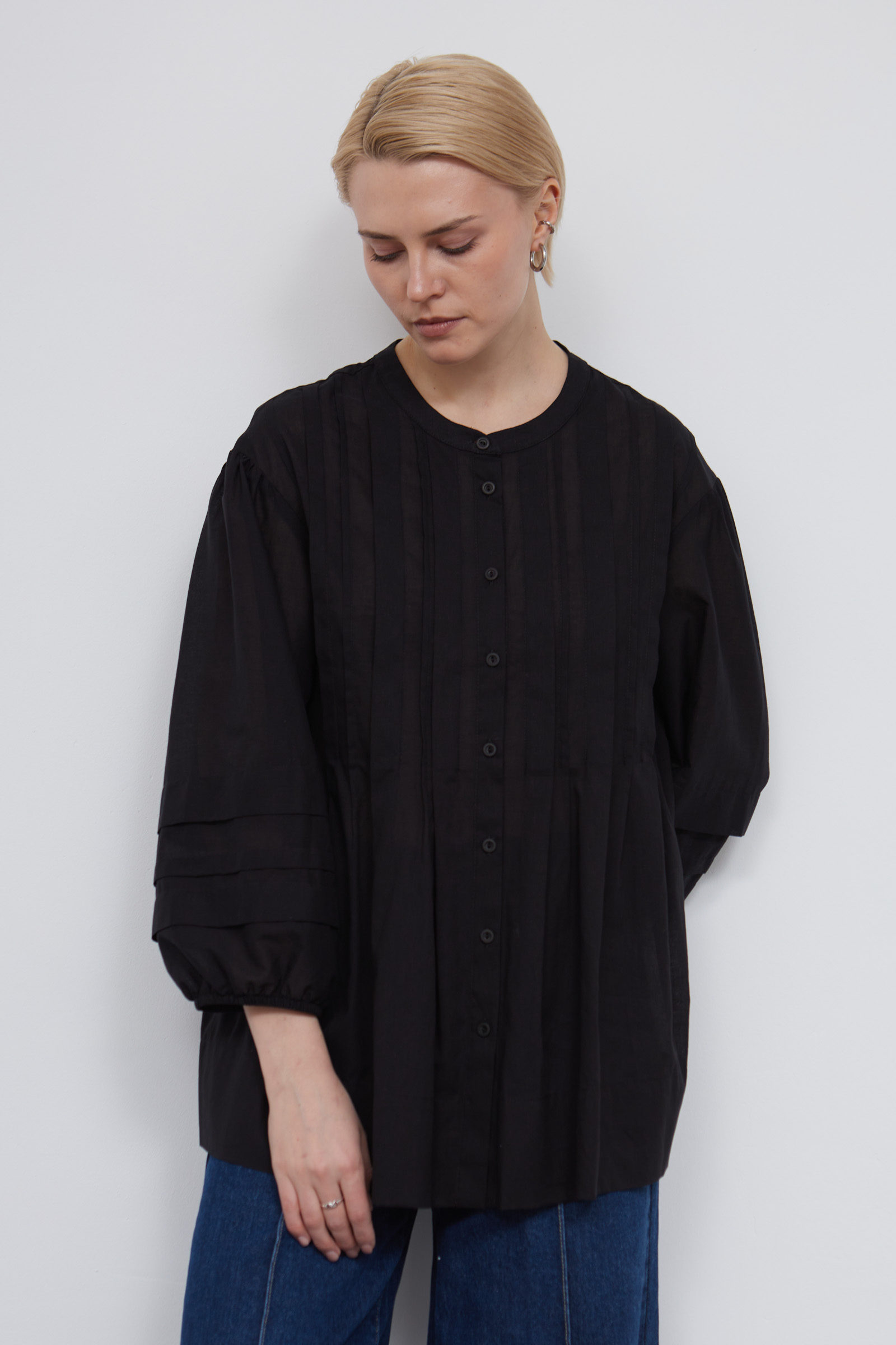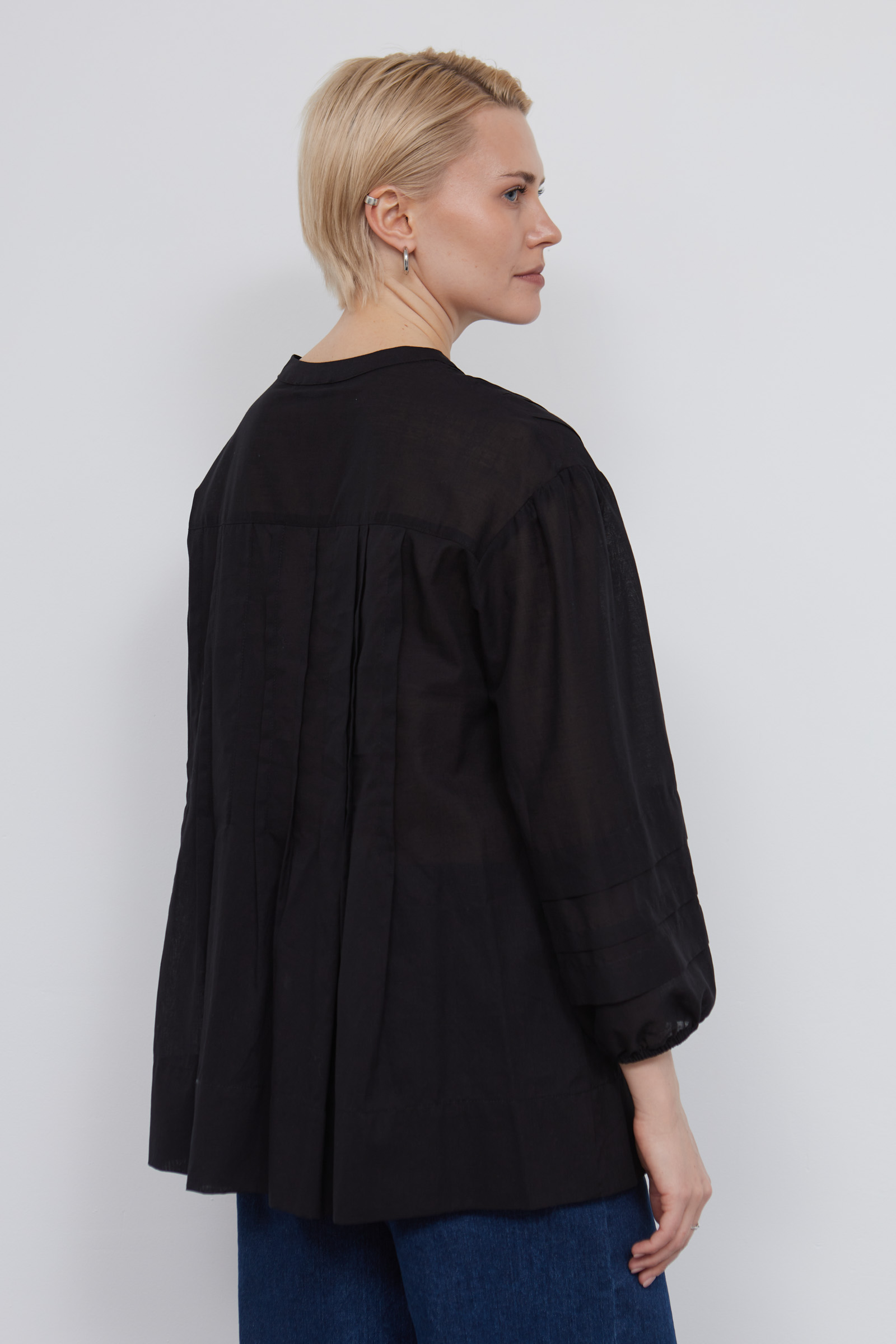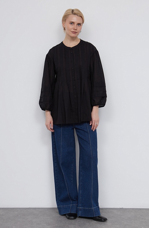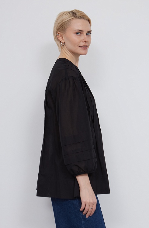 Блузка оверсайз из легкого полупрозрачного хлопка с защипами.