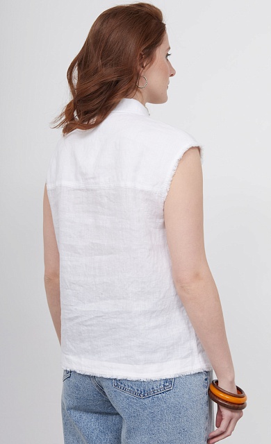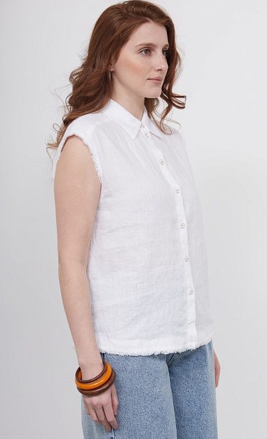 Блузка оверсайз из стираного льна с бахромой и застежкой на спинке.