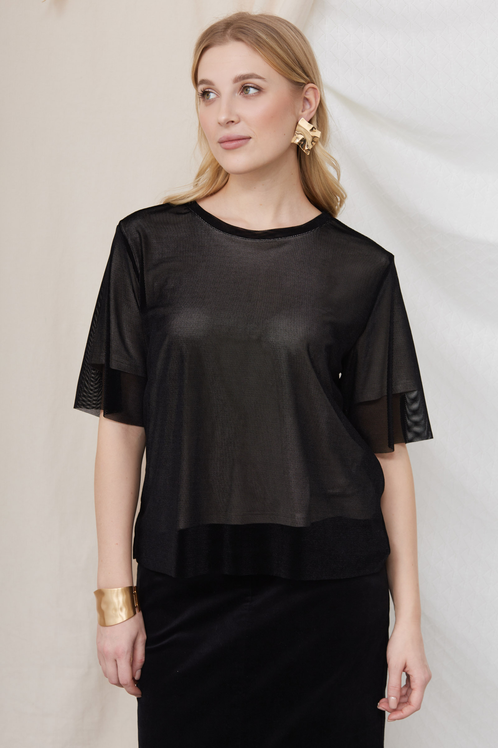 Двухслойная футболка oversize из вискозного трикотажа и бархатной сетки.