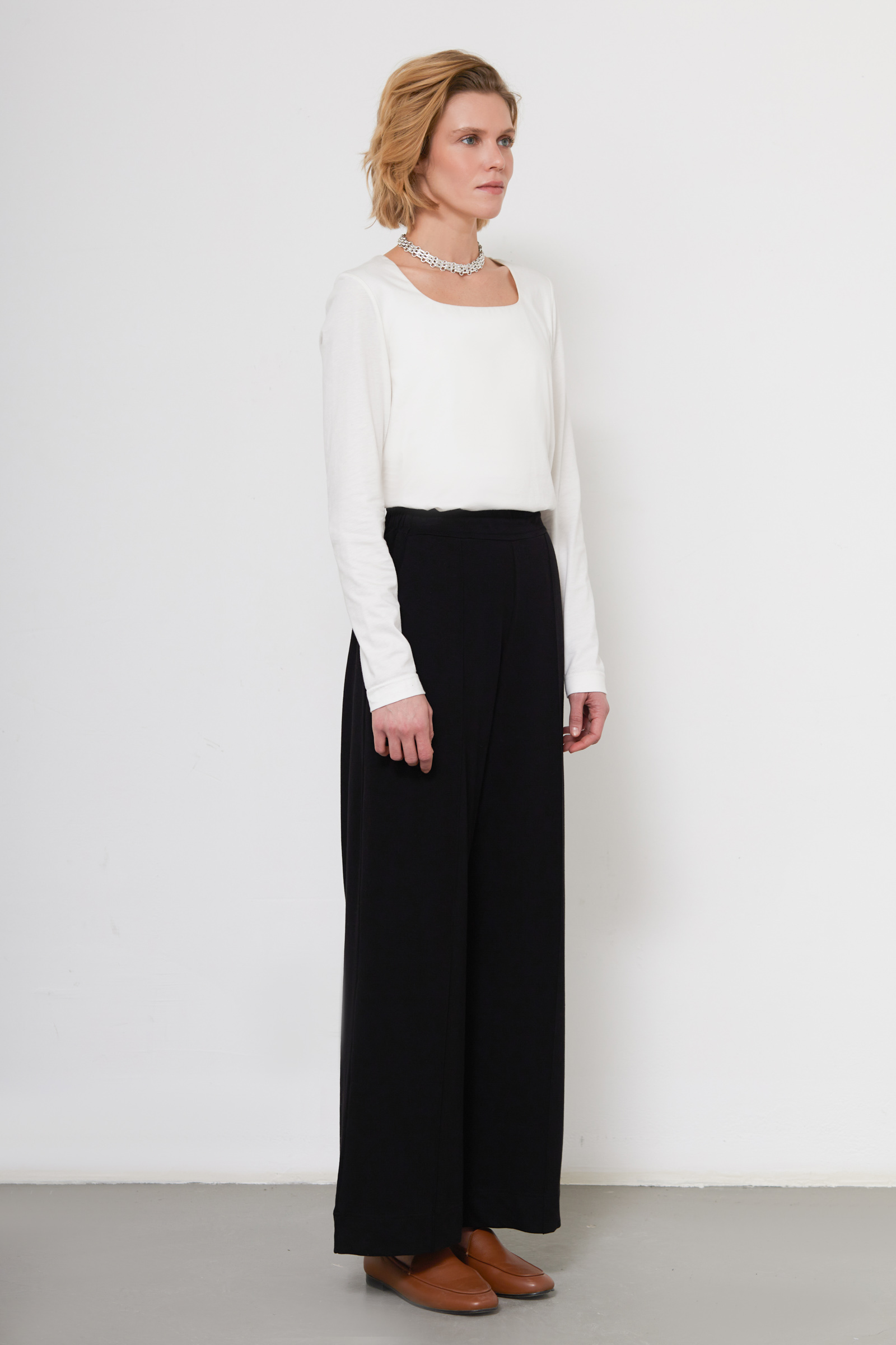 Широкие брюки из мягкого трикотажа на эластичном поясе.