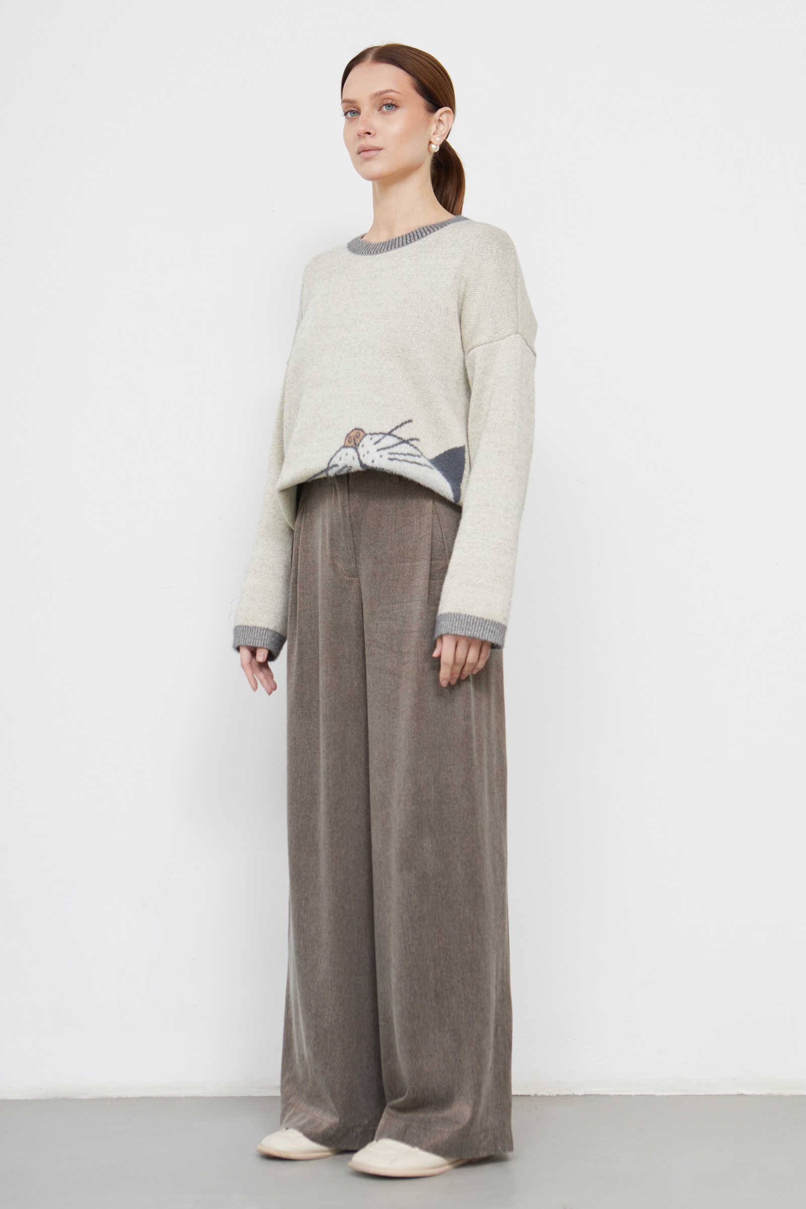 Широкие брюки из струящейся ткани с меланжевым эффектом и складками.