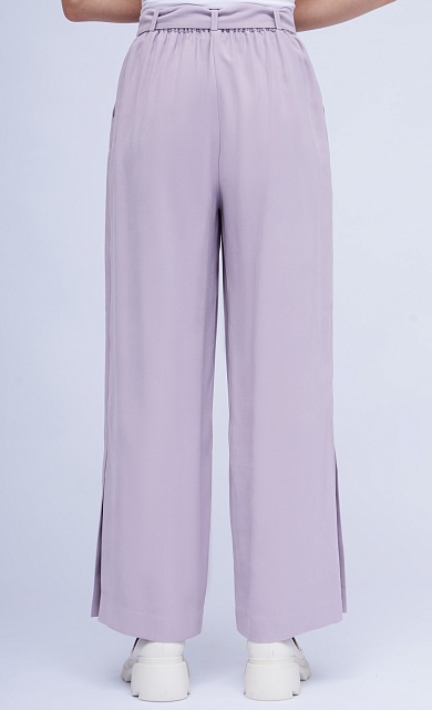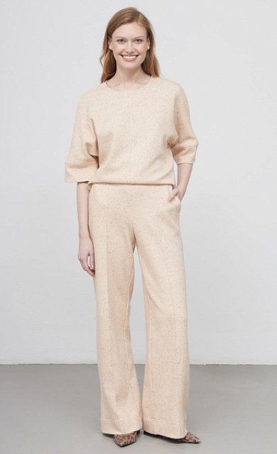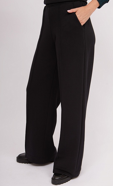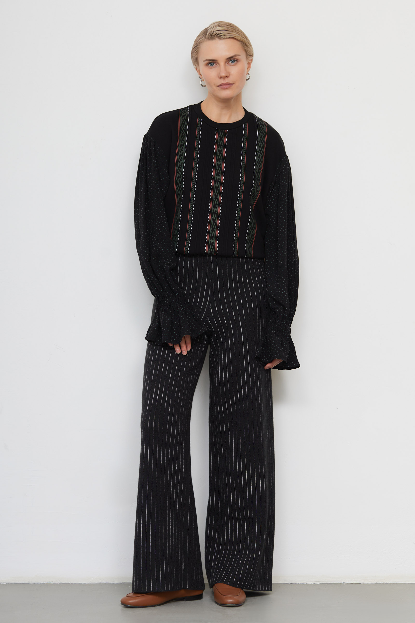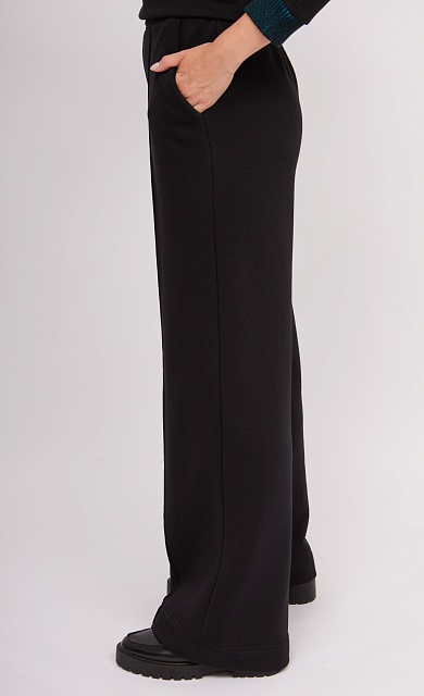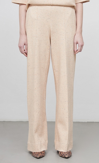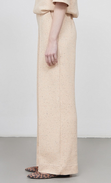 Широкие вязаные брюки в полоску на эластичном поясе.
