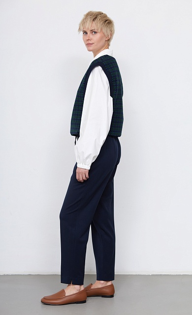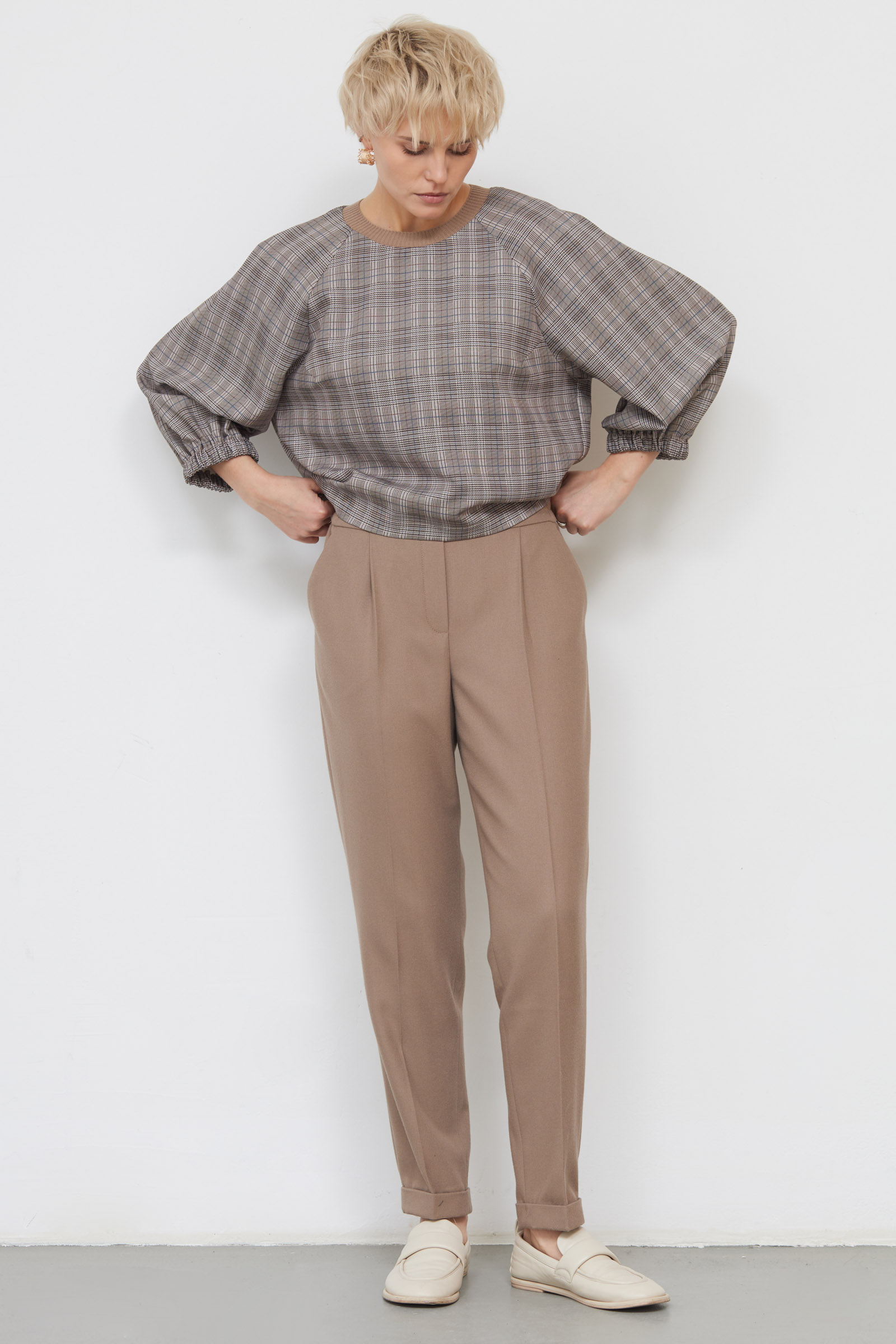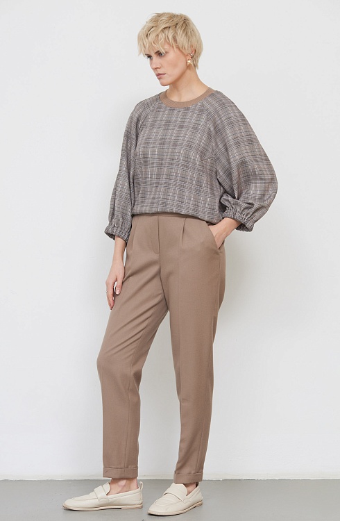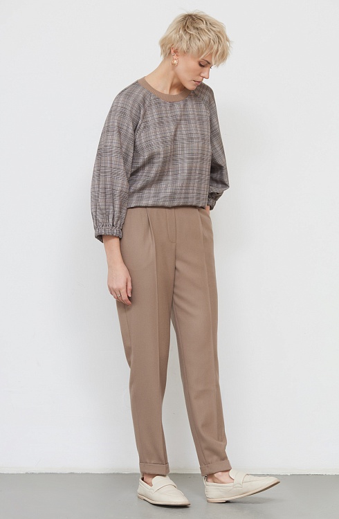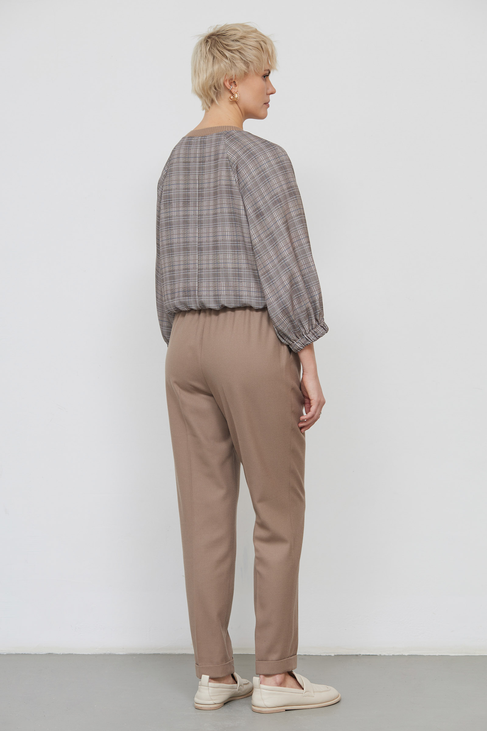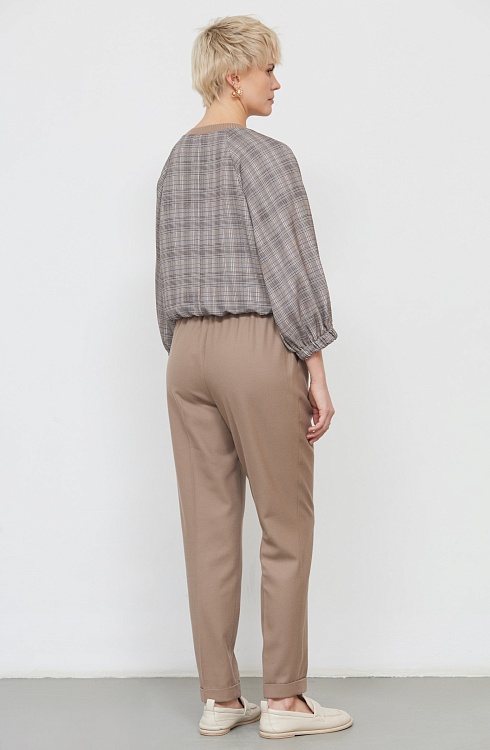 Зауженные брюки из мягкой фланелевой ткани на эластичном поясе.