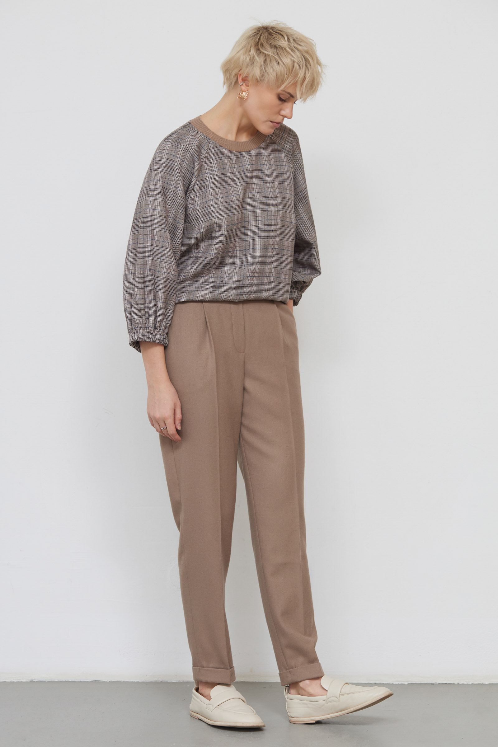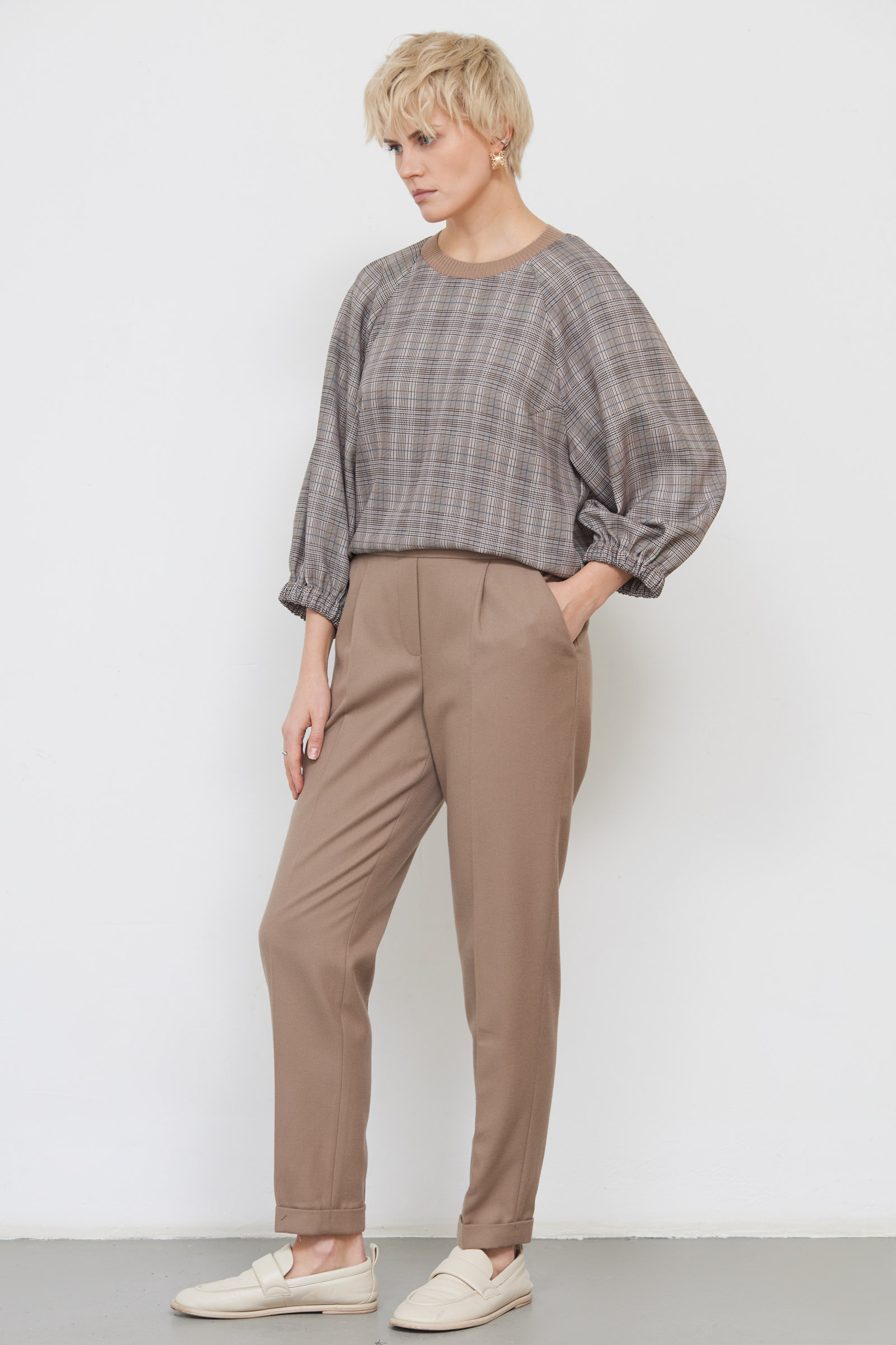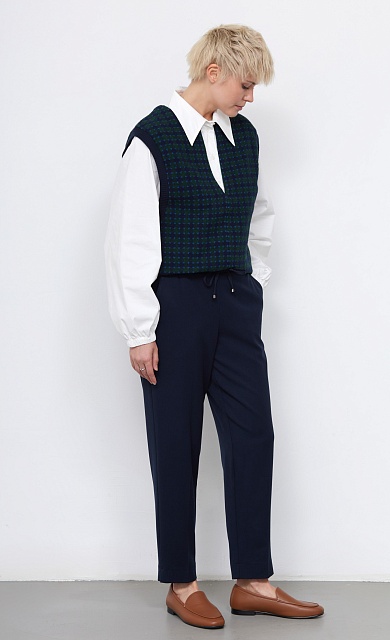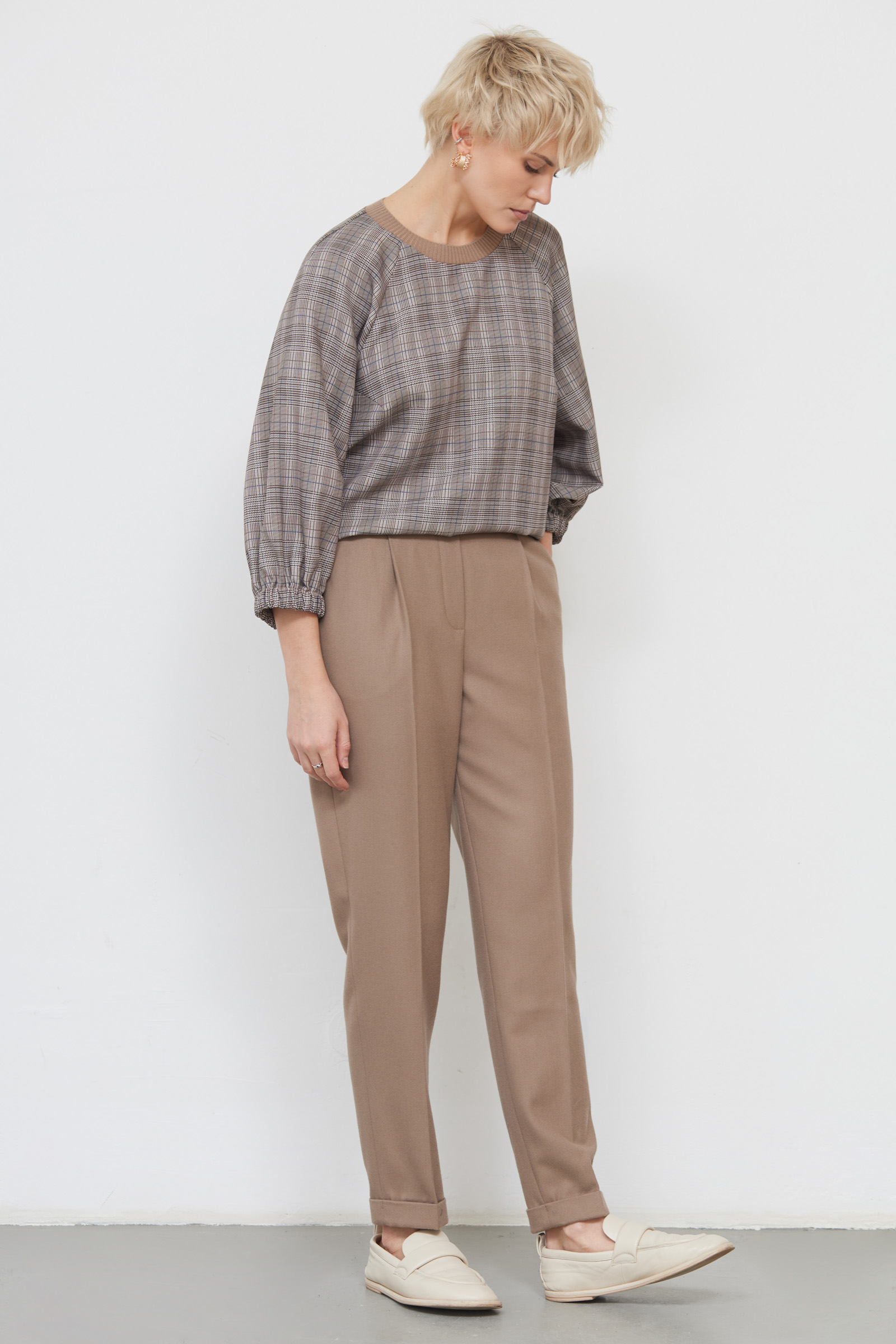 Зауженные брюки из мягкой фланелевой ткани на эластичном поясе.