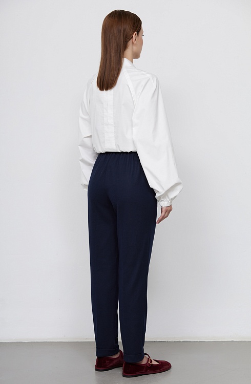Зауженные брюки из мягкой фланелевой ткани на эластичном поясе.