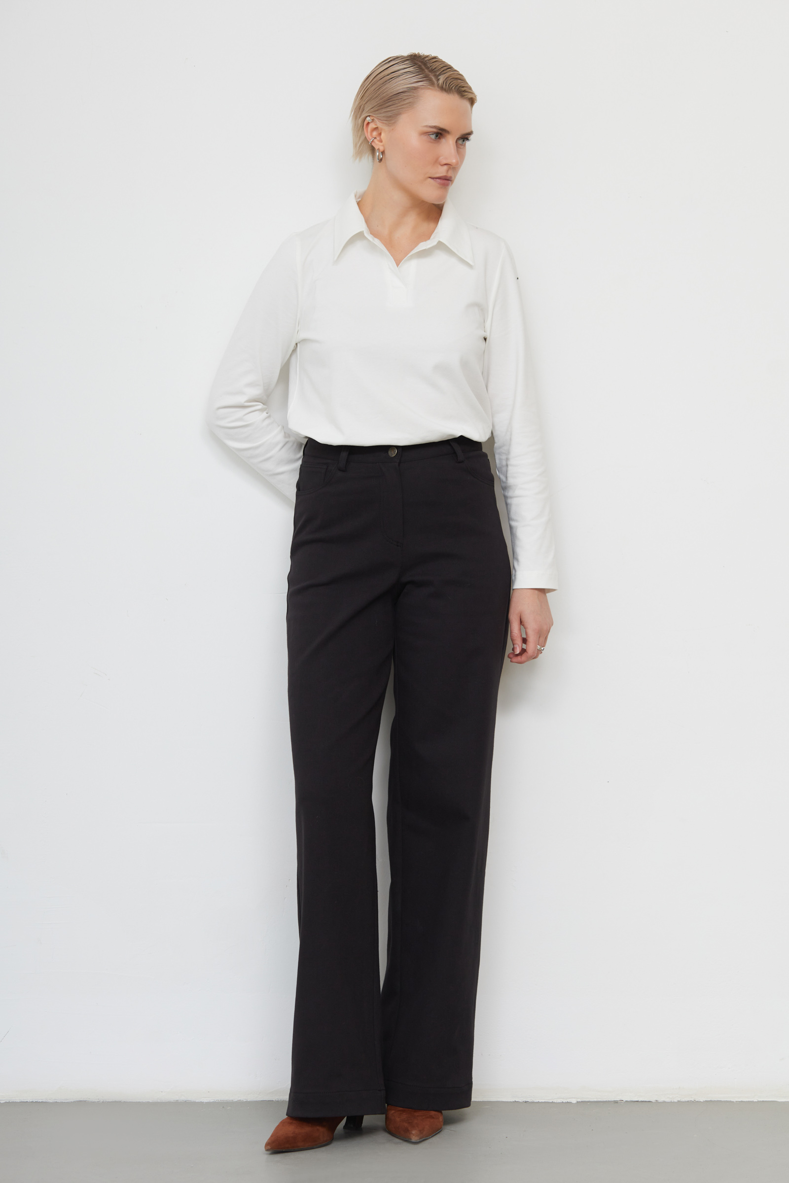 Широкие брюки из эластичного денима.