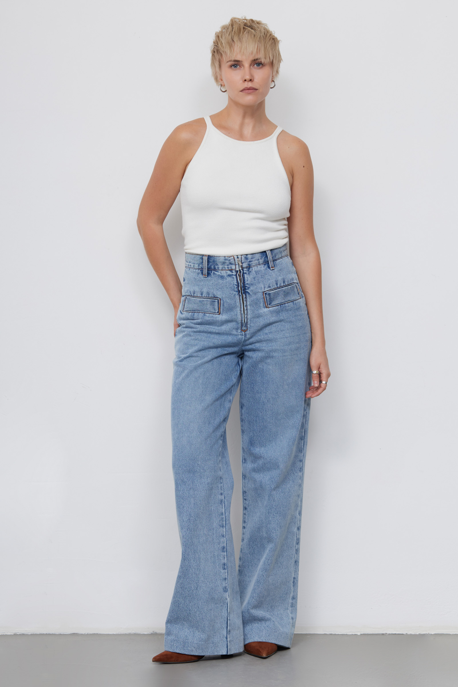 Джинсы с открытой молнией
