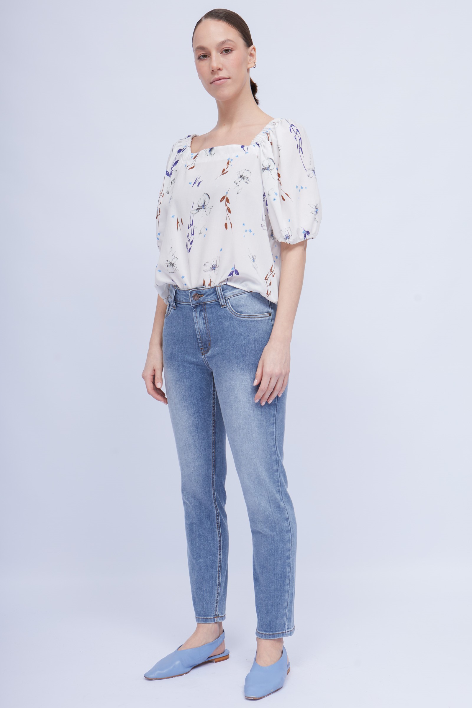 Облегающие джинсы из эластичного денима с эффектом потертости.