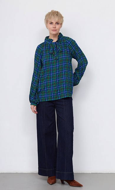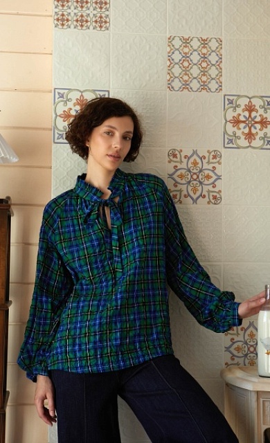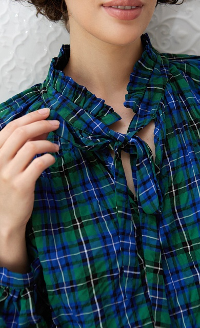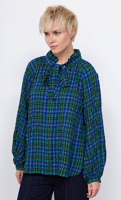 Блуза в клетку с воротником аскот