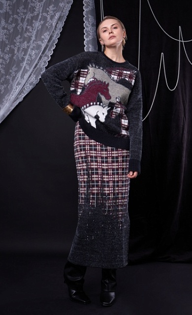 Платье миди комбинированное