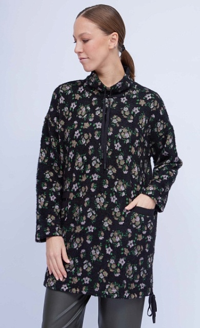Блузка из атласной вискозы с цветочным принтом и трикотажной отделкой.