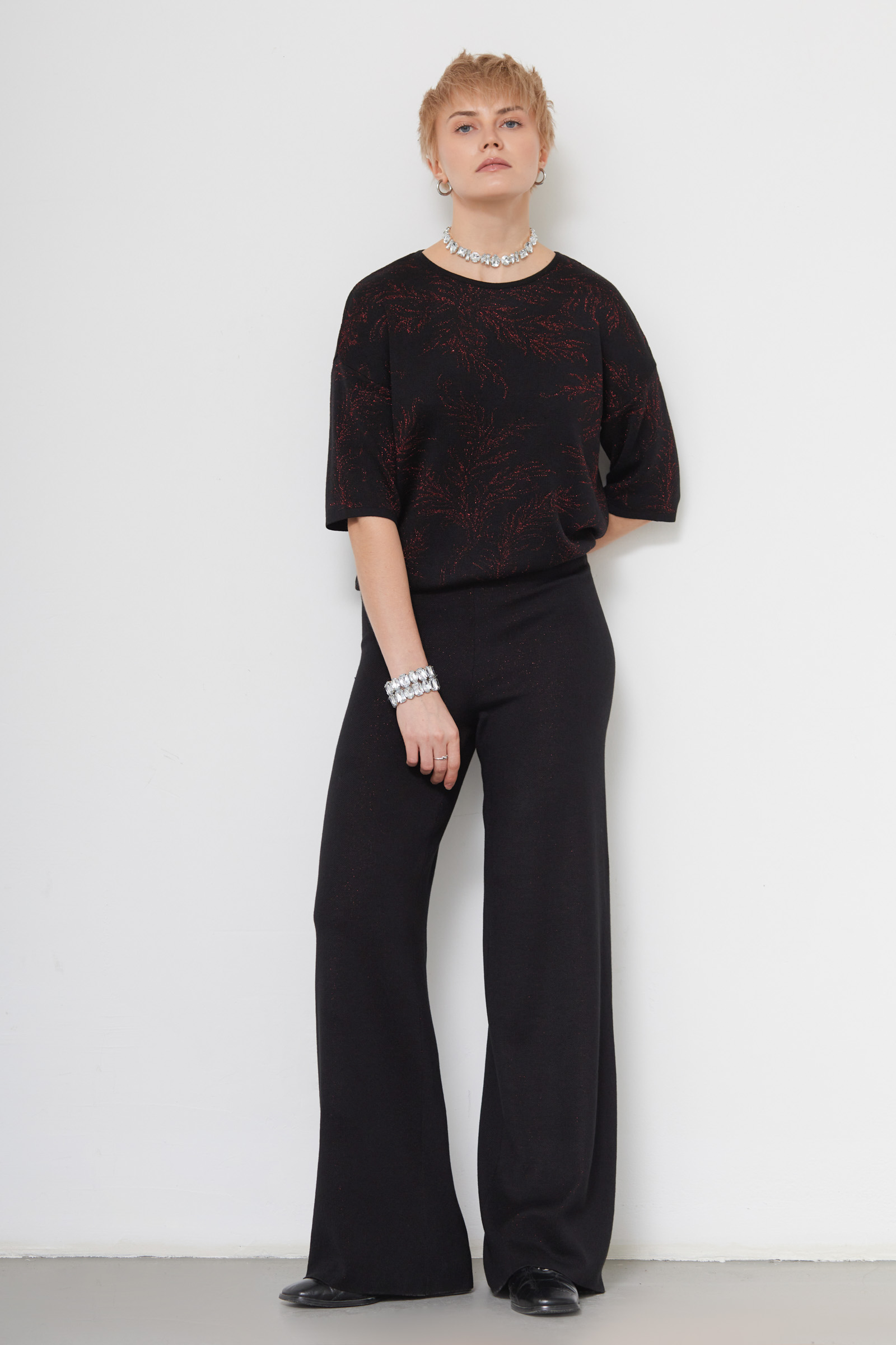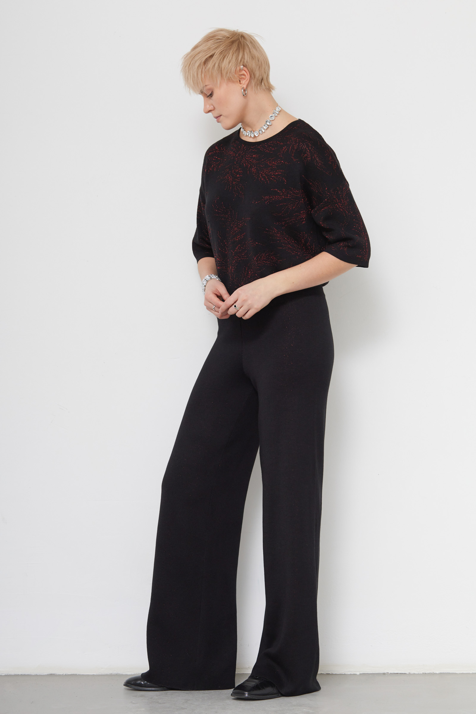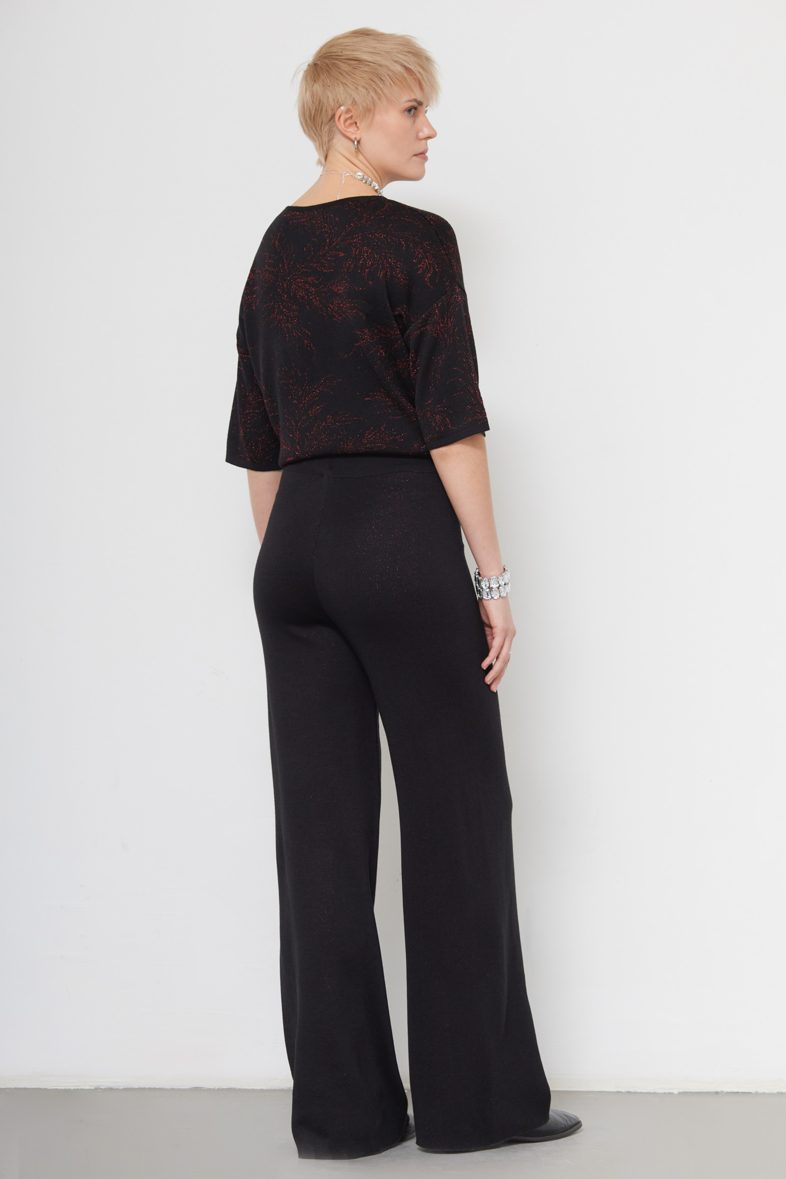 Брюки из мягкого вязаного трикотажа с люрексом.