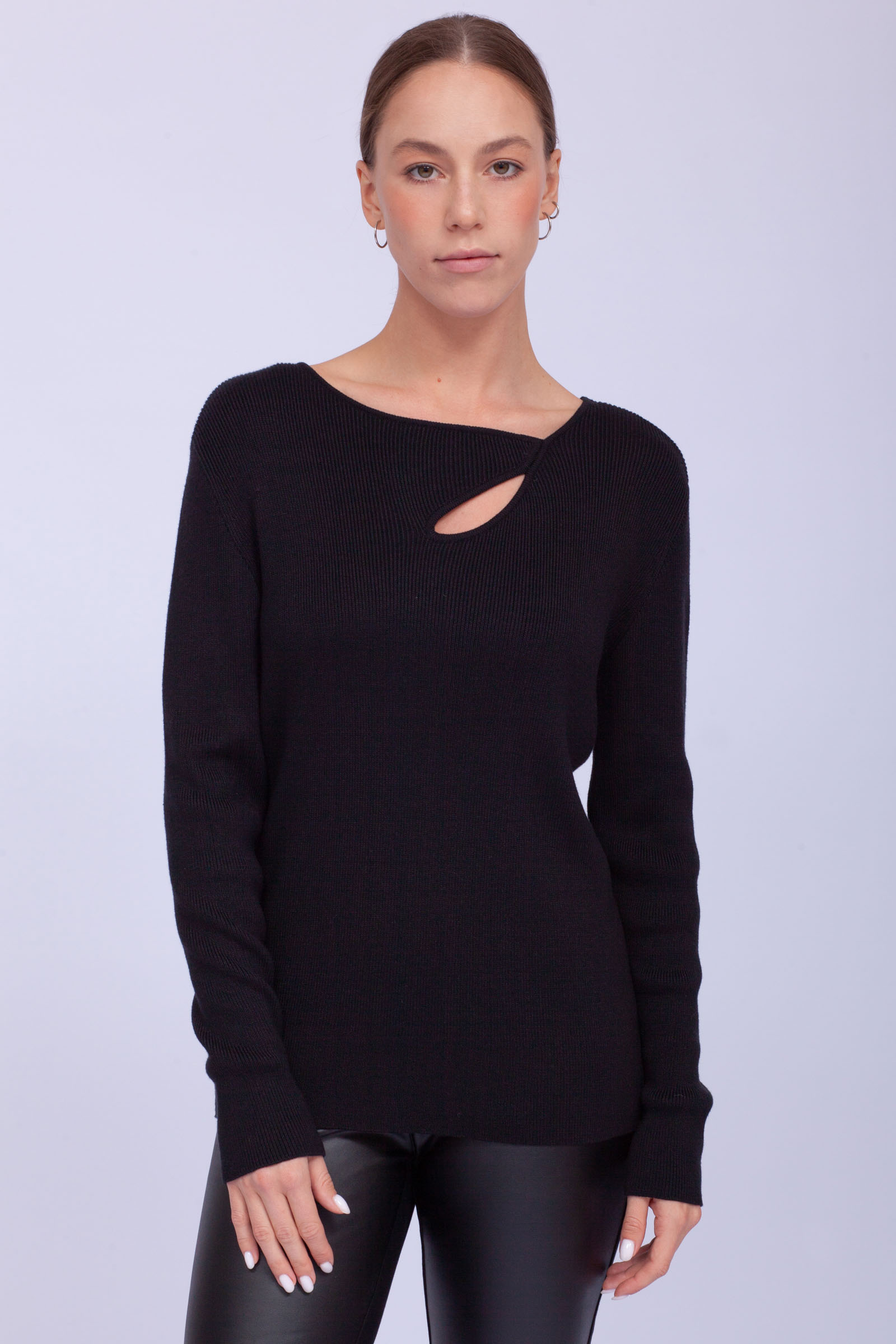 Вязаный джемпер с асимметричной горловиной и фигурным вырезом.