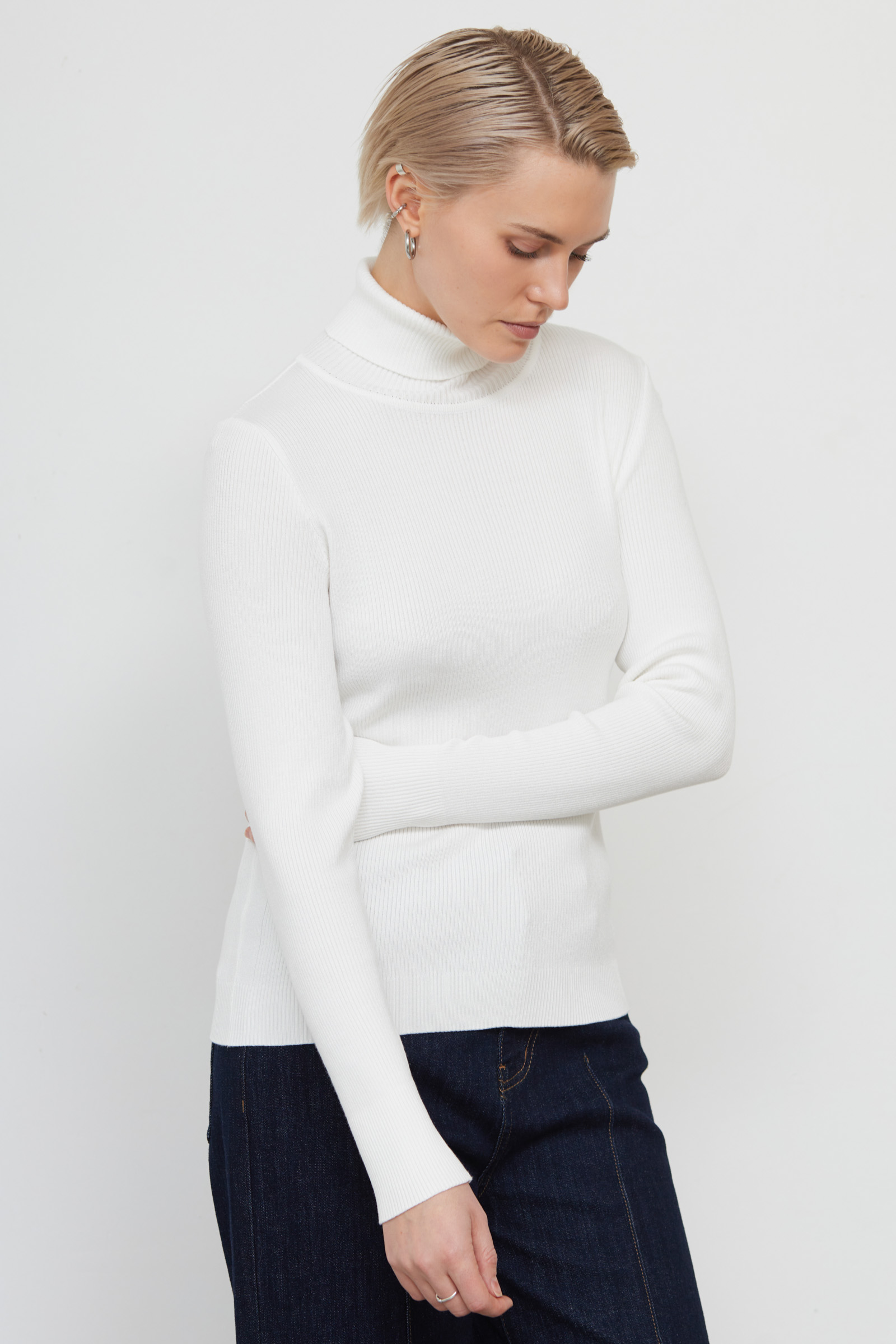 Базовая водолазка из мягкого вискозного трикотажа в рубчик.