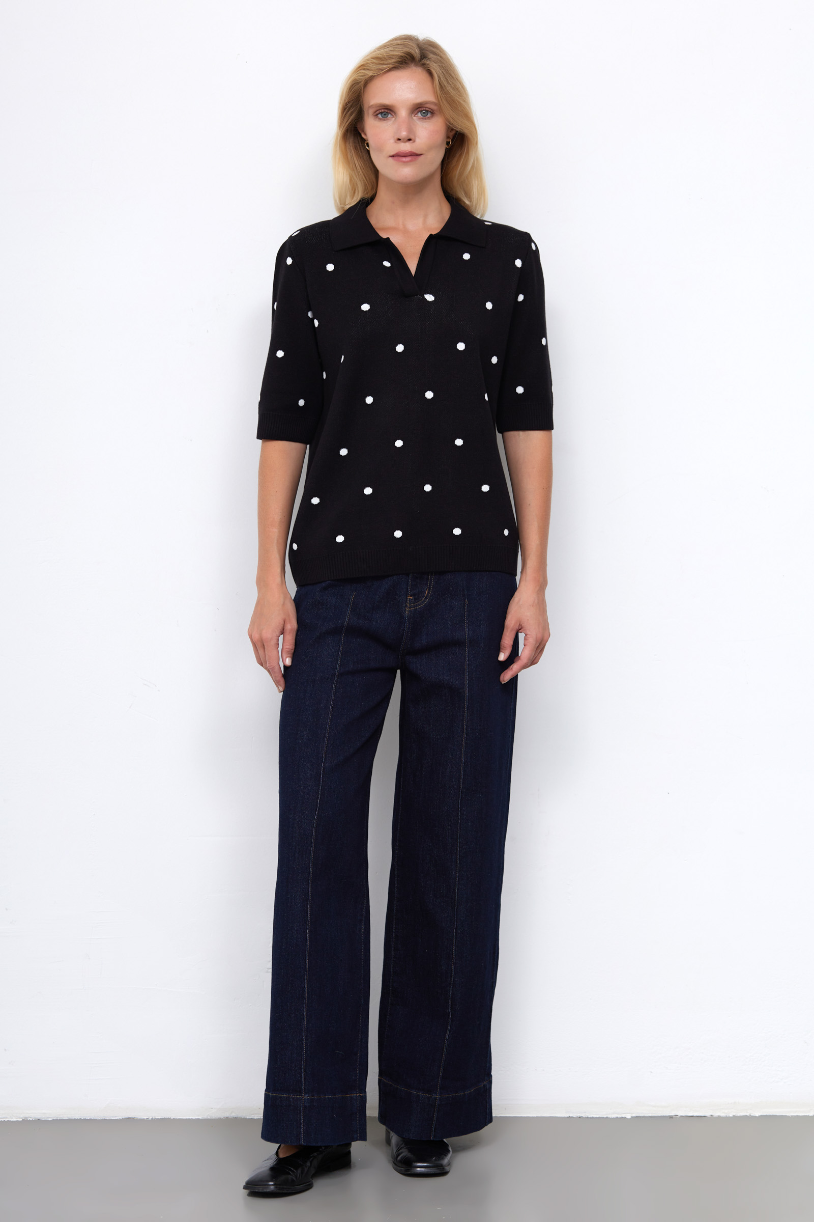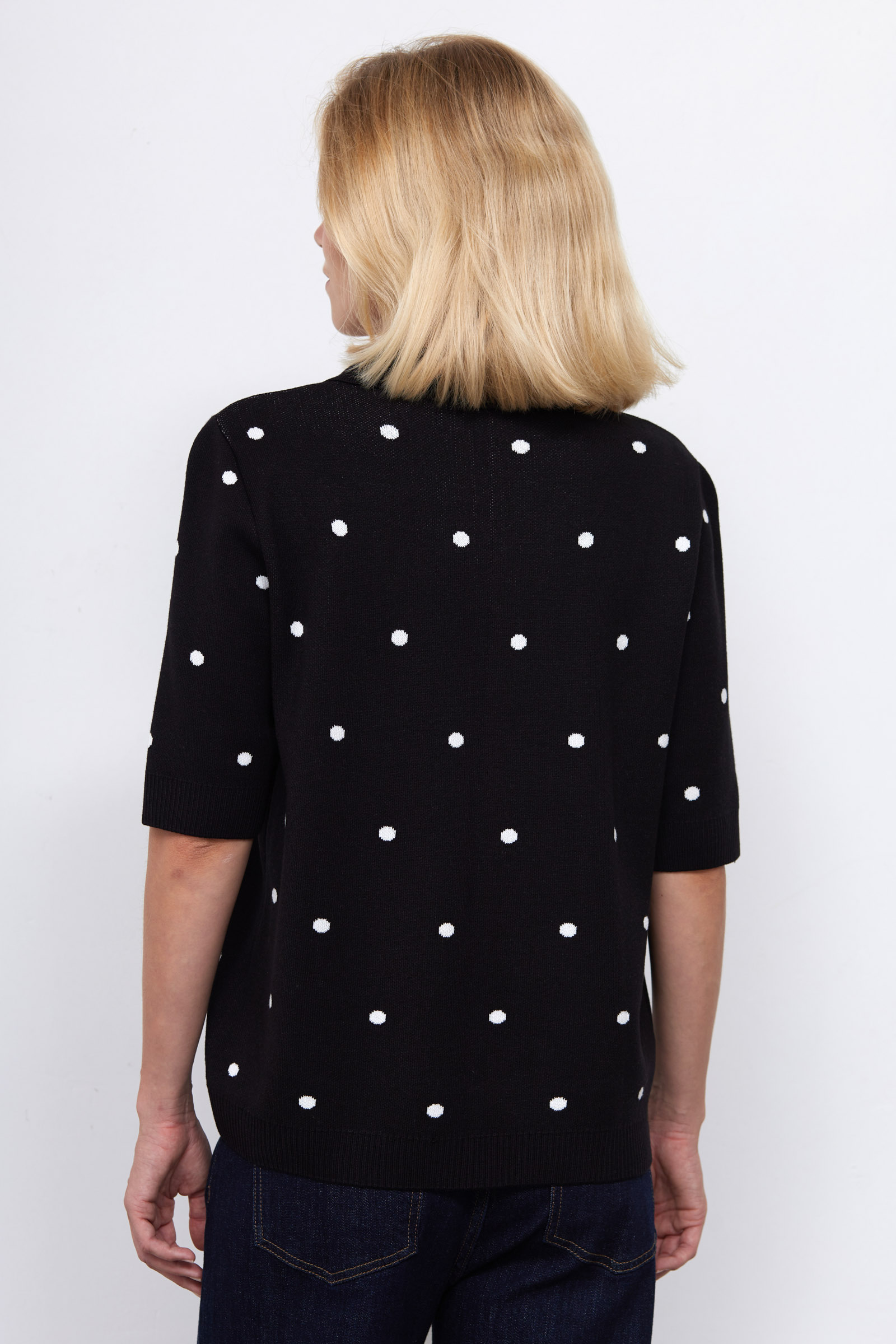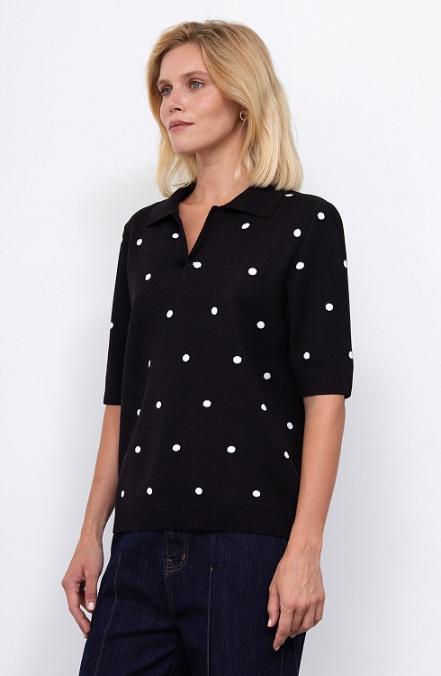 Джемпер поло из мягкого вязаного трикотажа в горошек.