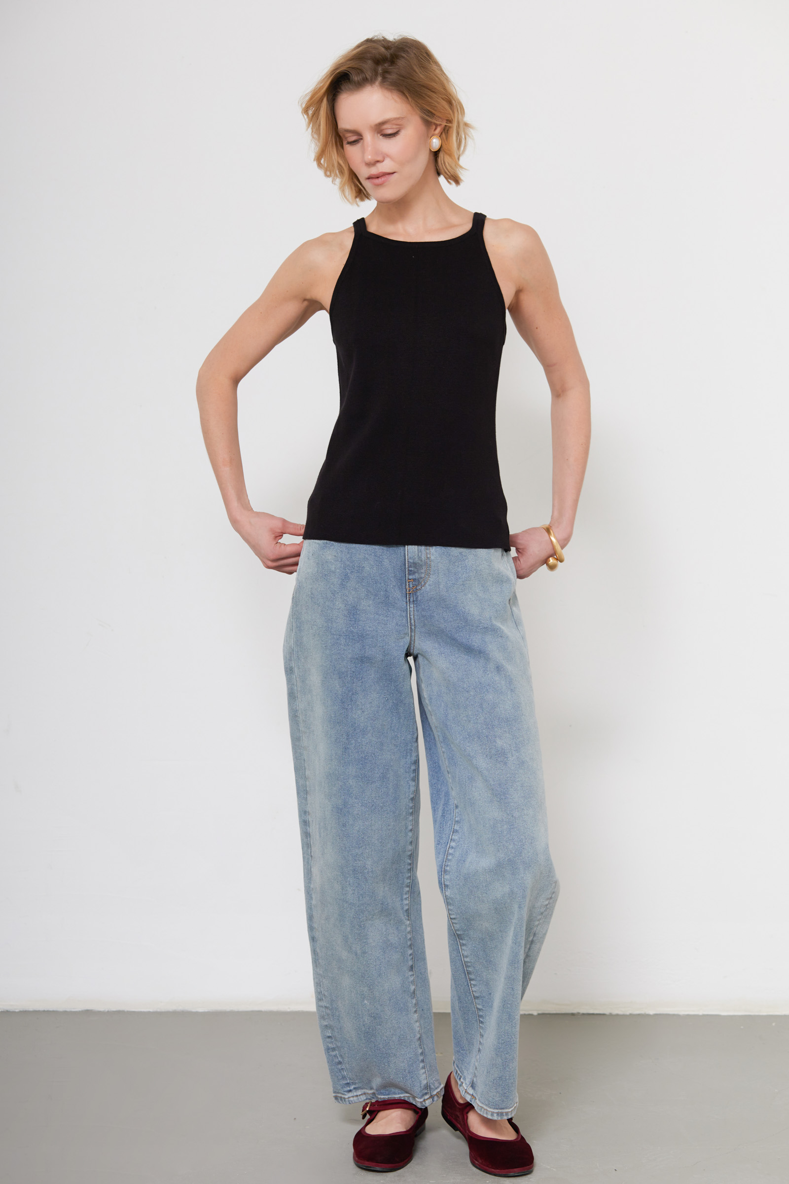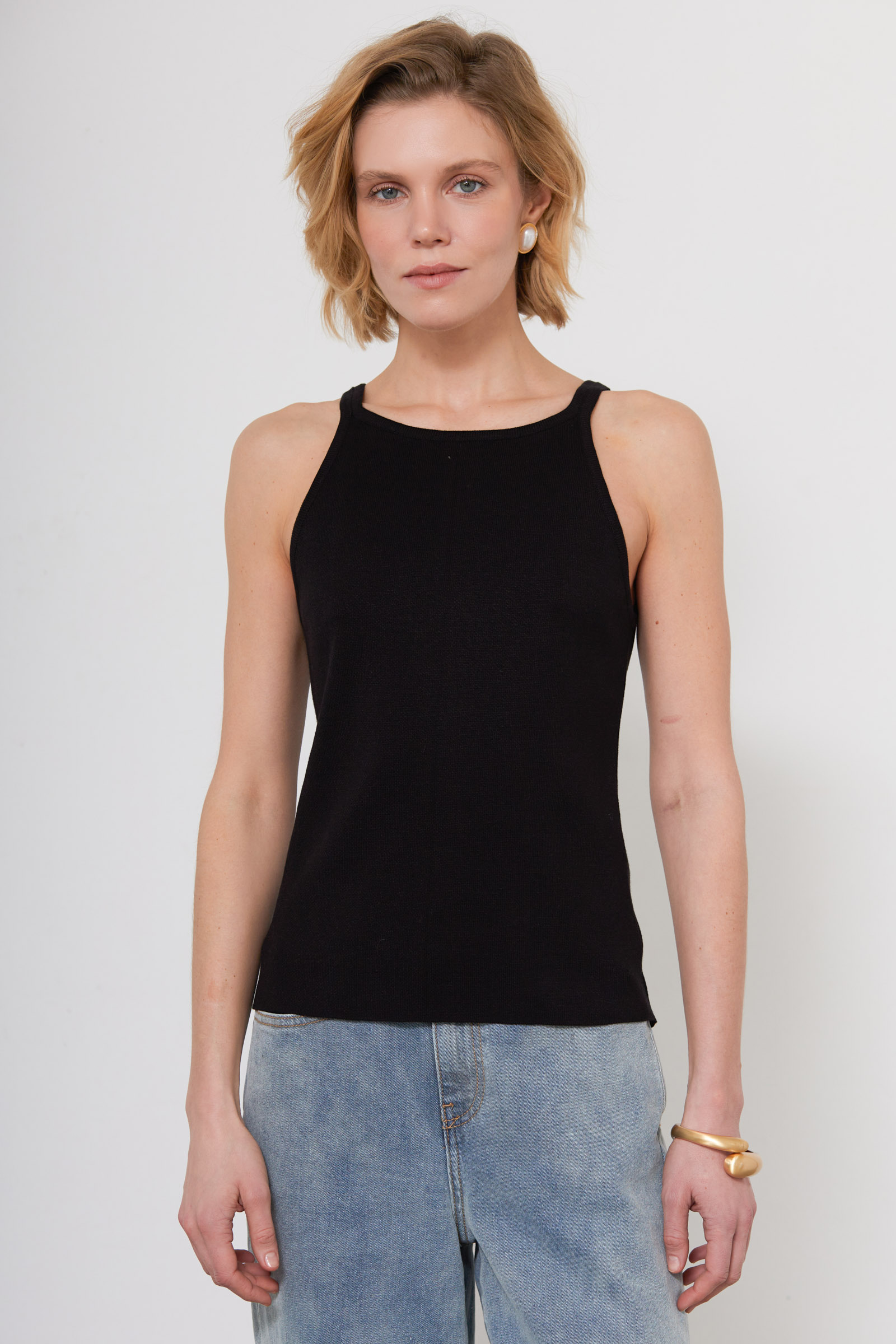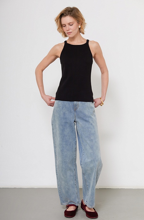 Топ из мягкого вязаного трикотажа на тонких бретелях.