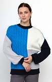 Джемпер колор-блок комбинированной вязки с шерстью.