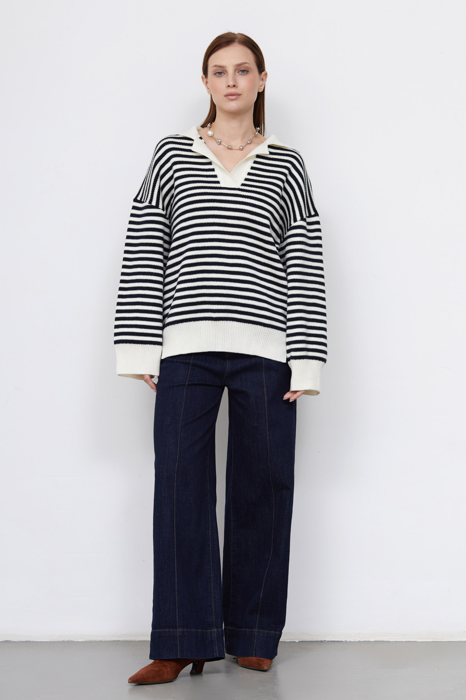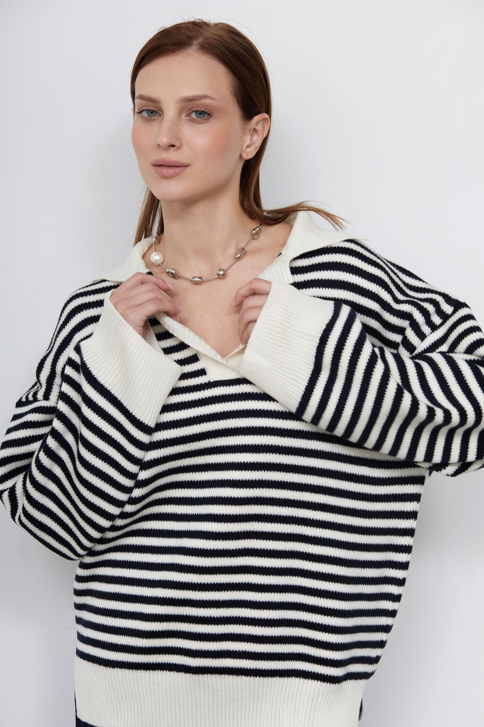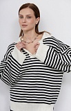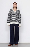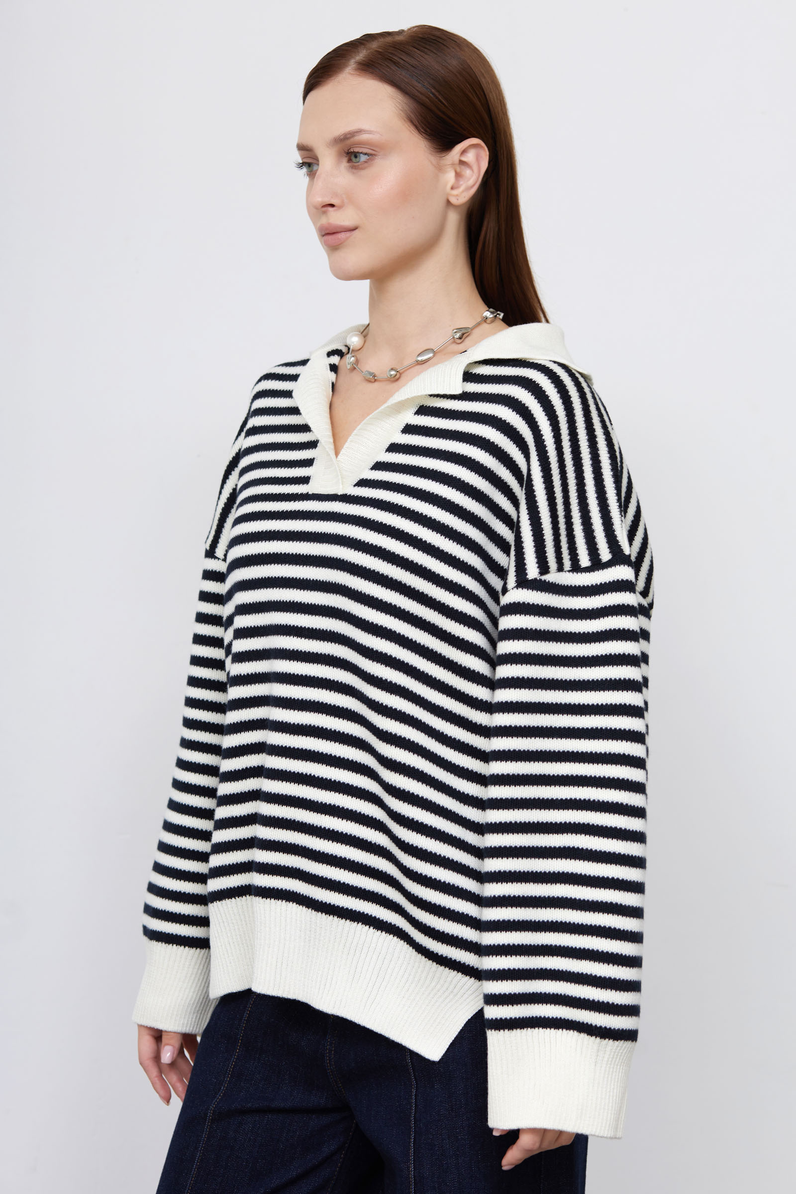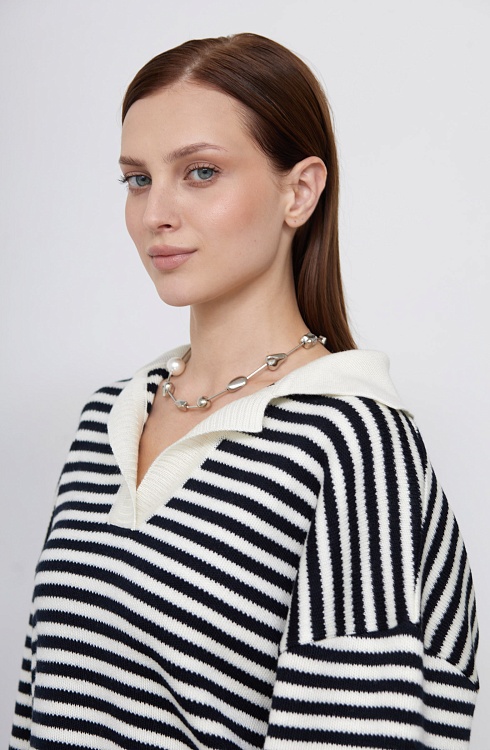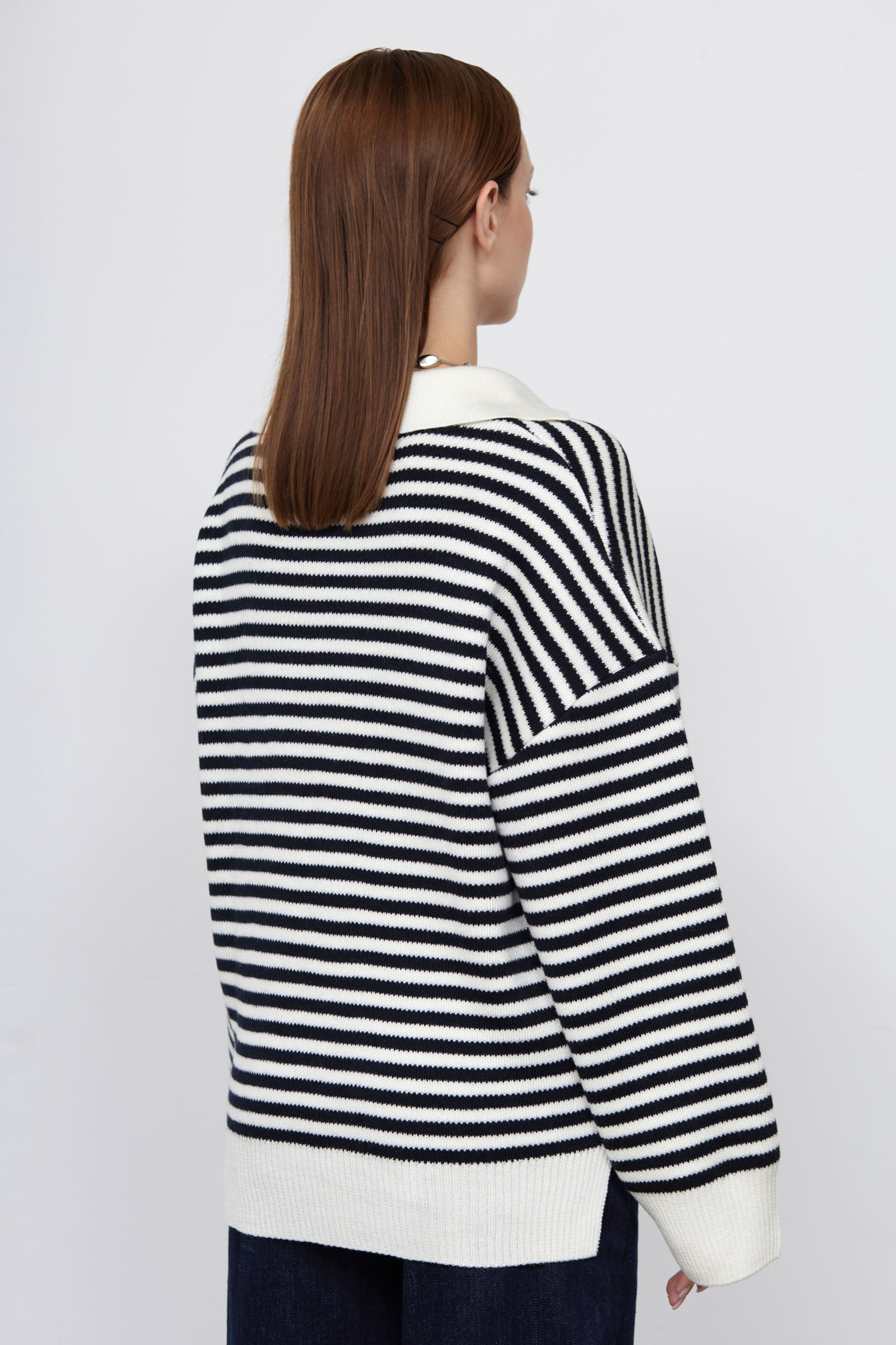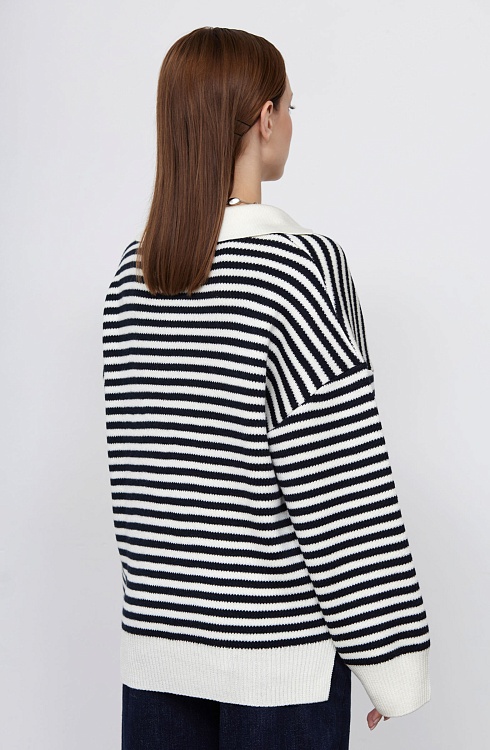 Джемпер поло oversize из полушерстяного вязаного трикотажа в полоску.