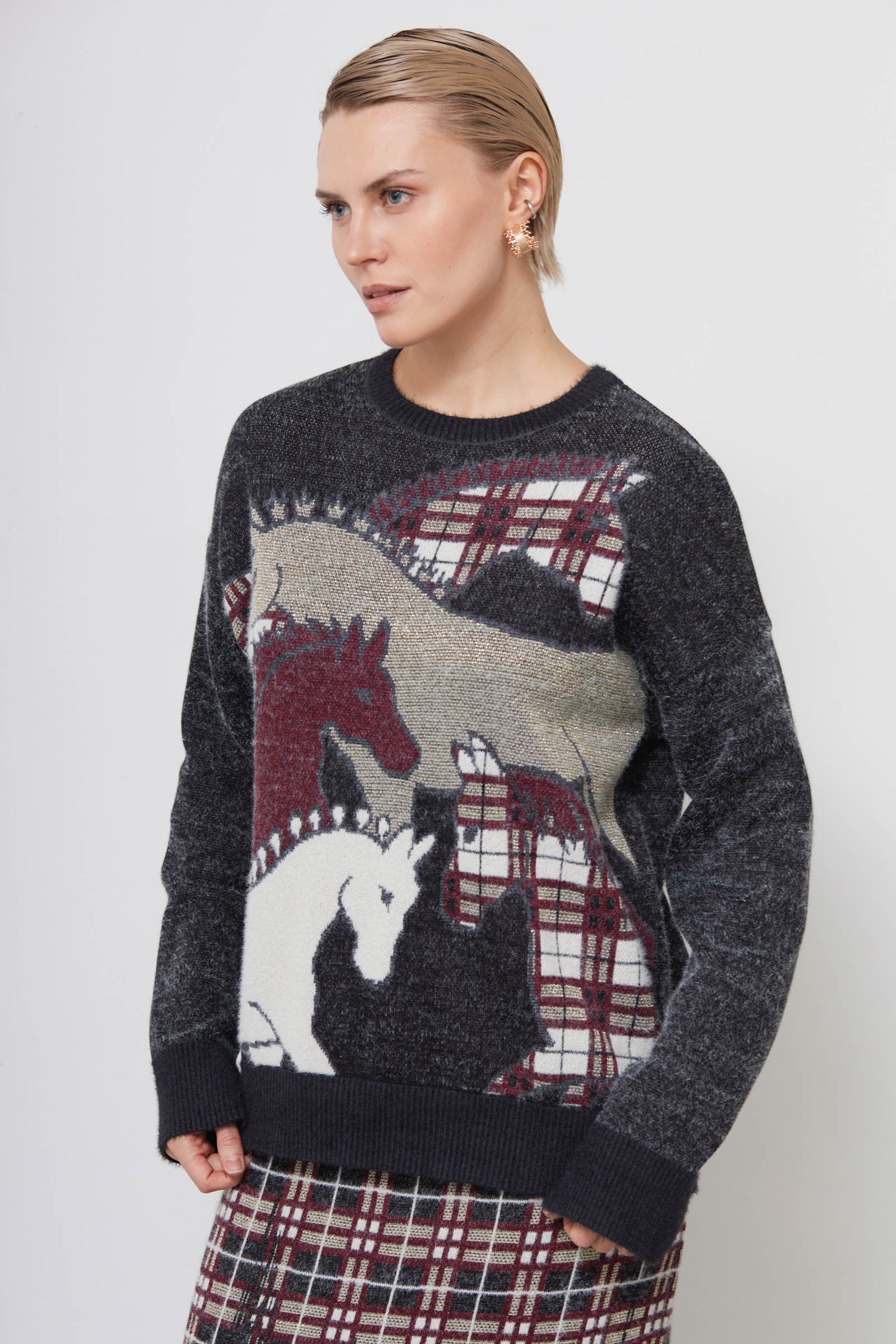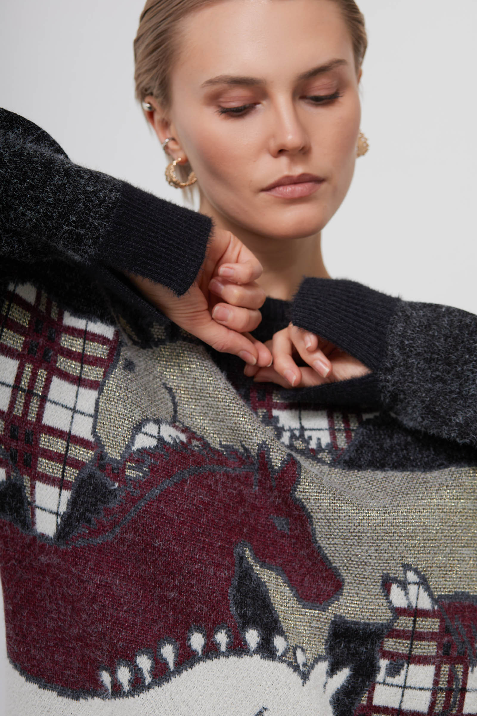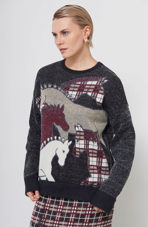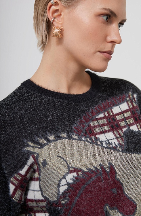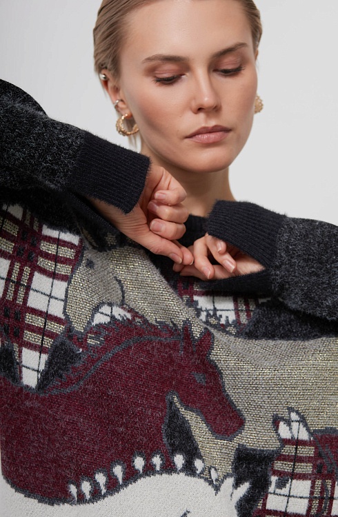 Джемпер oversize из мягкого пушистого трикотажа жаккардовой вязки с люрексом.