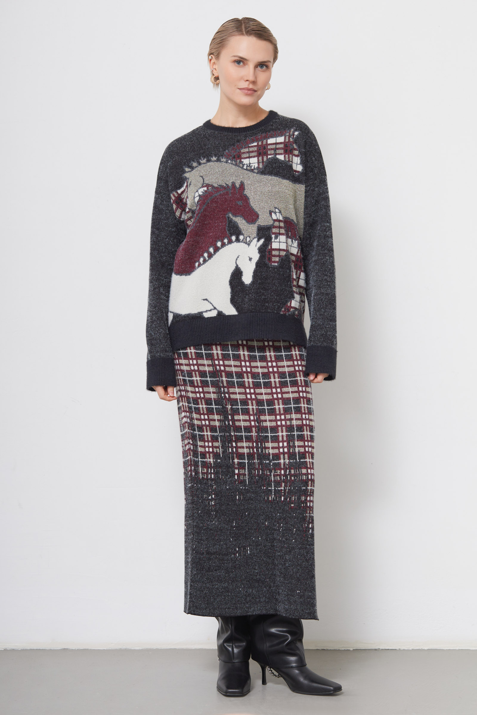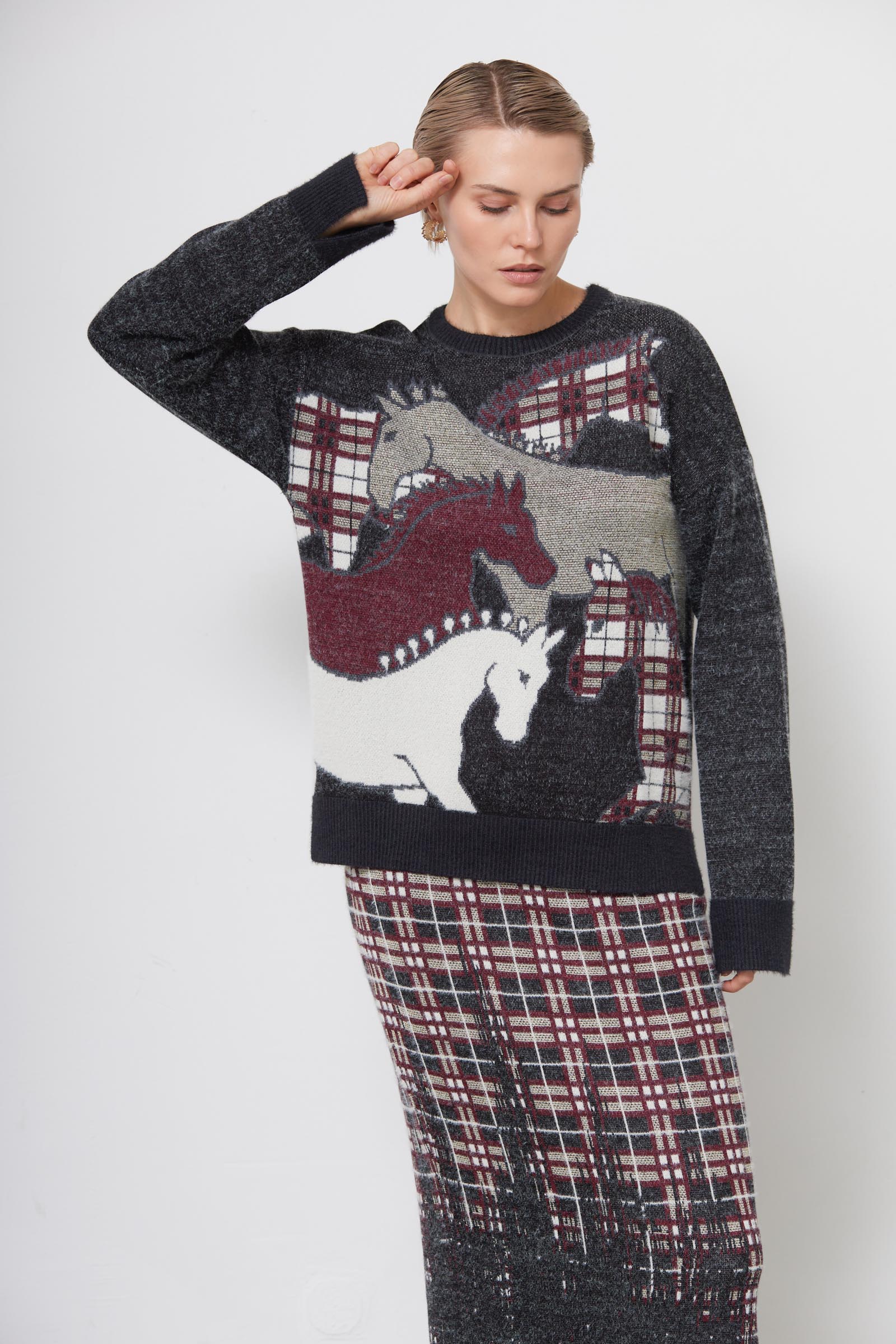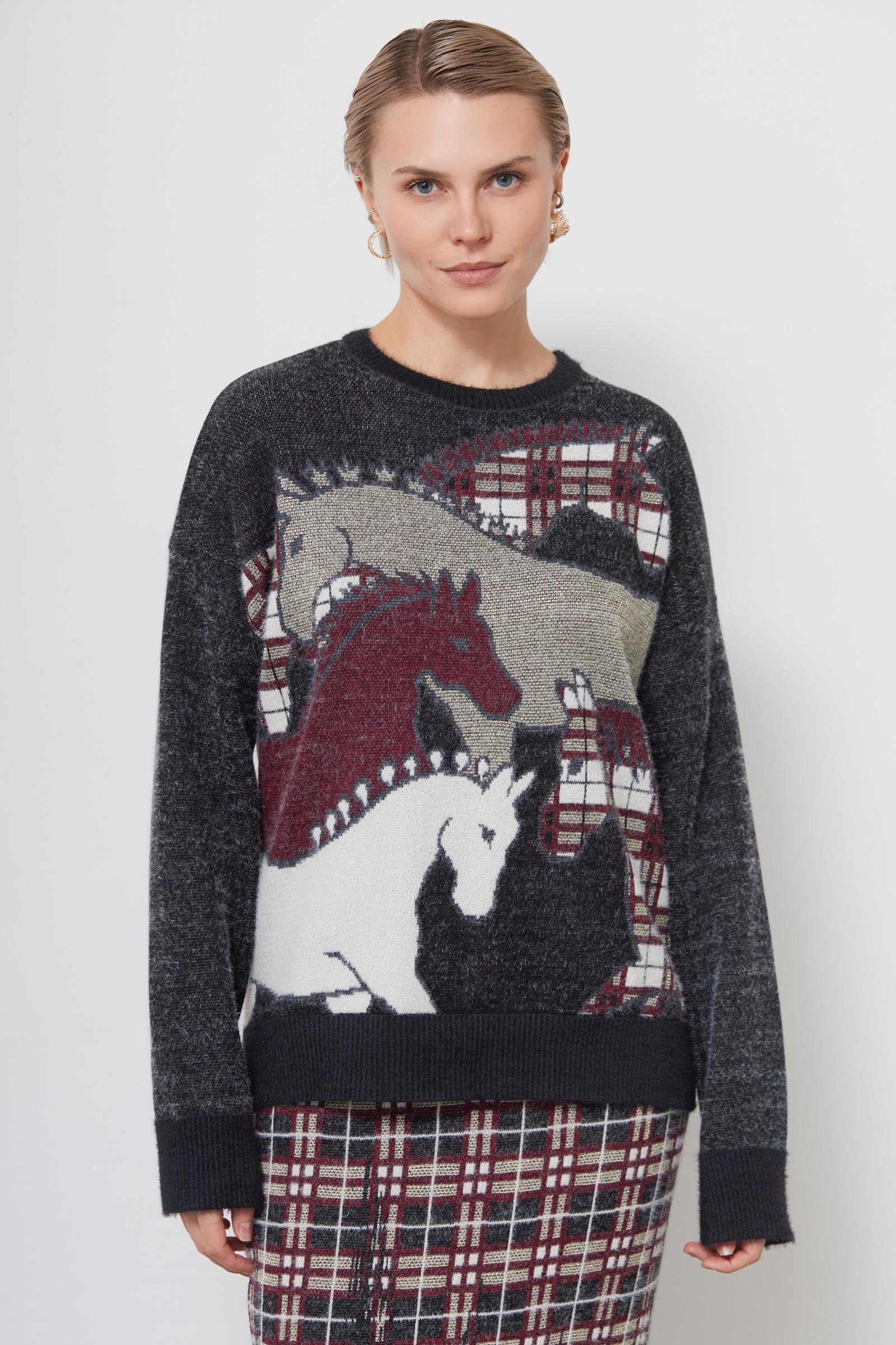 Джемпер oversize из мягкого пушистого трикотажа жаккардовой вязки с люрексом.