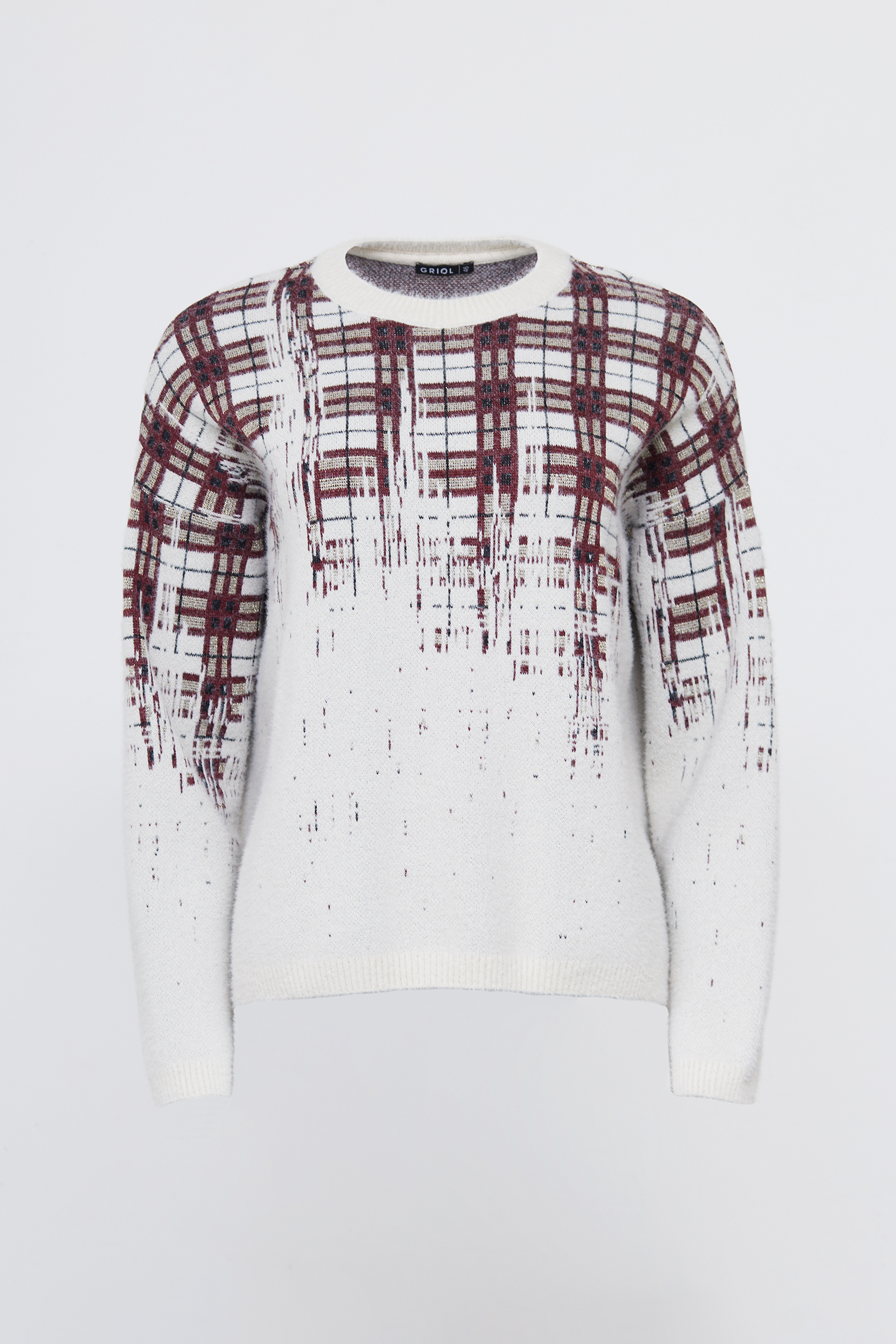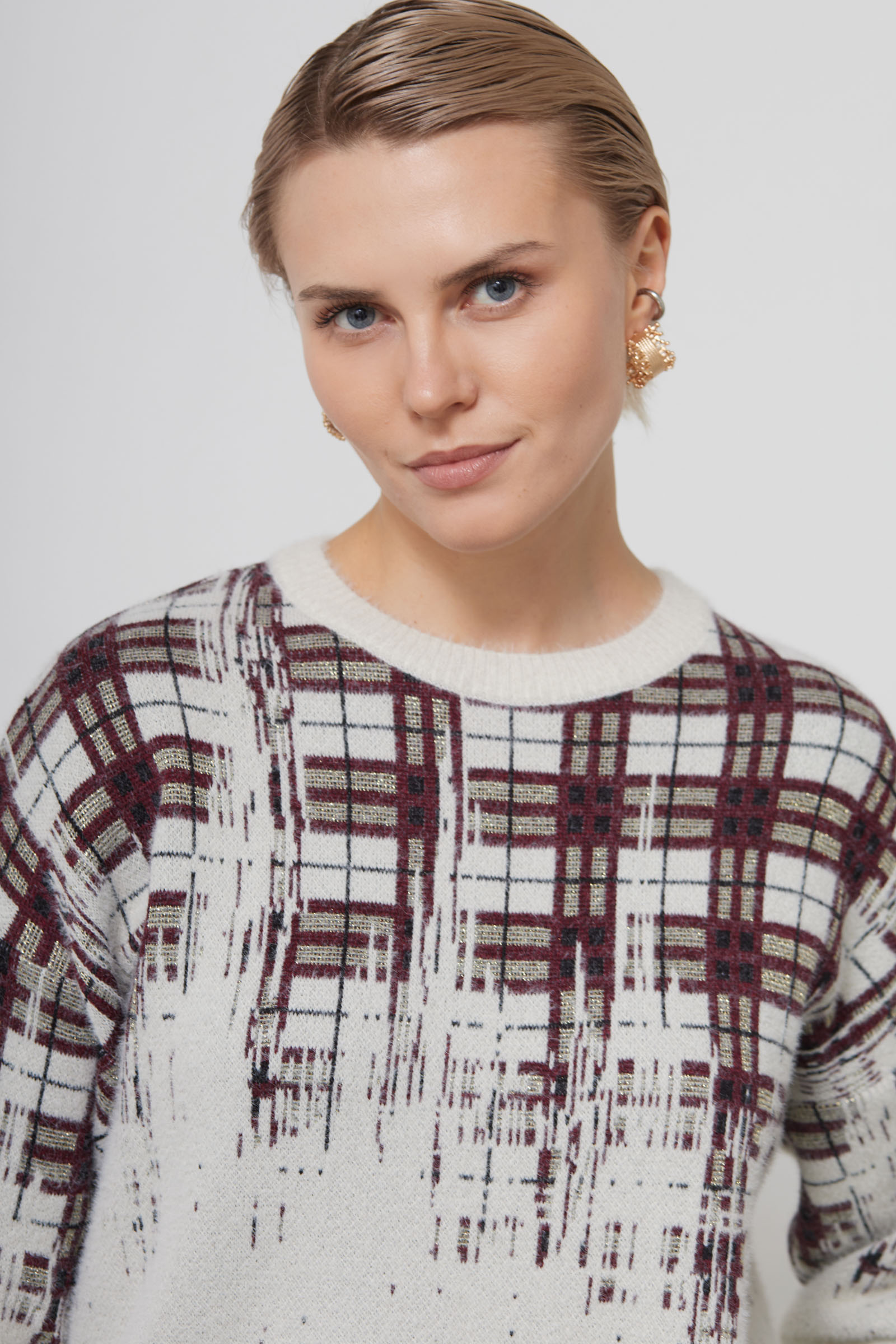 Джемпер из мягкого пушистого трикотажа жаккардовой вязки с люрексом.
