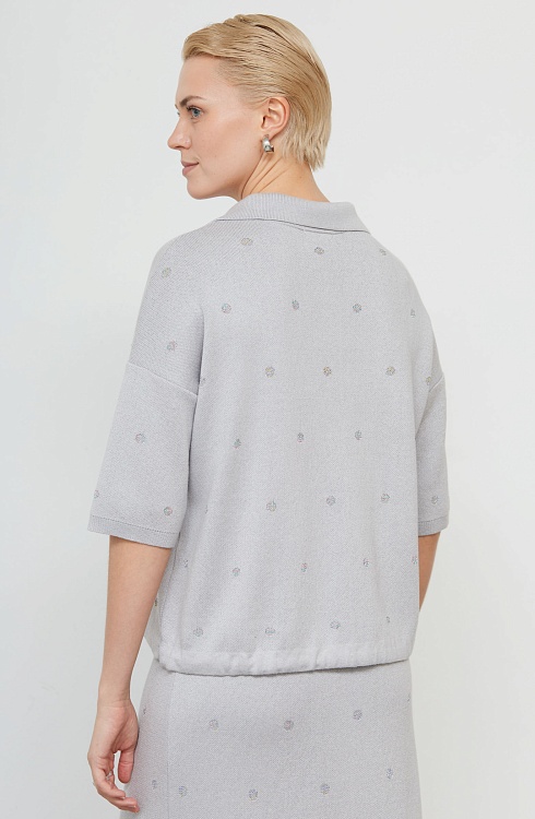 Джемпер-поло oversize из мягкого вязаного трикотажа в горошек из люрекса.