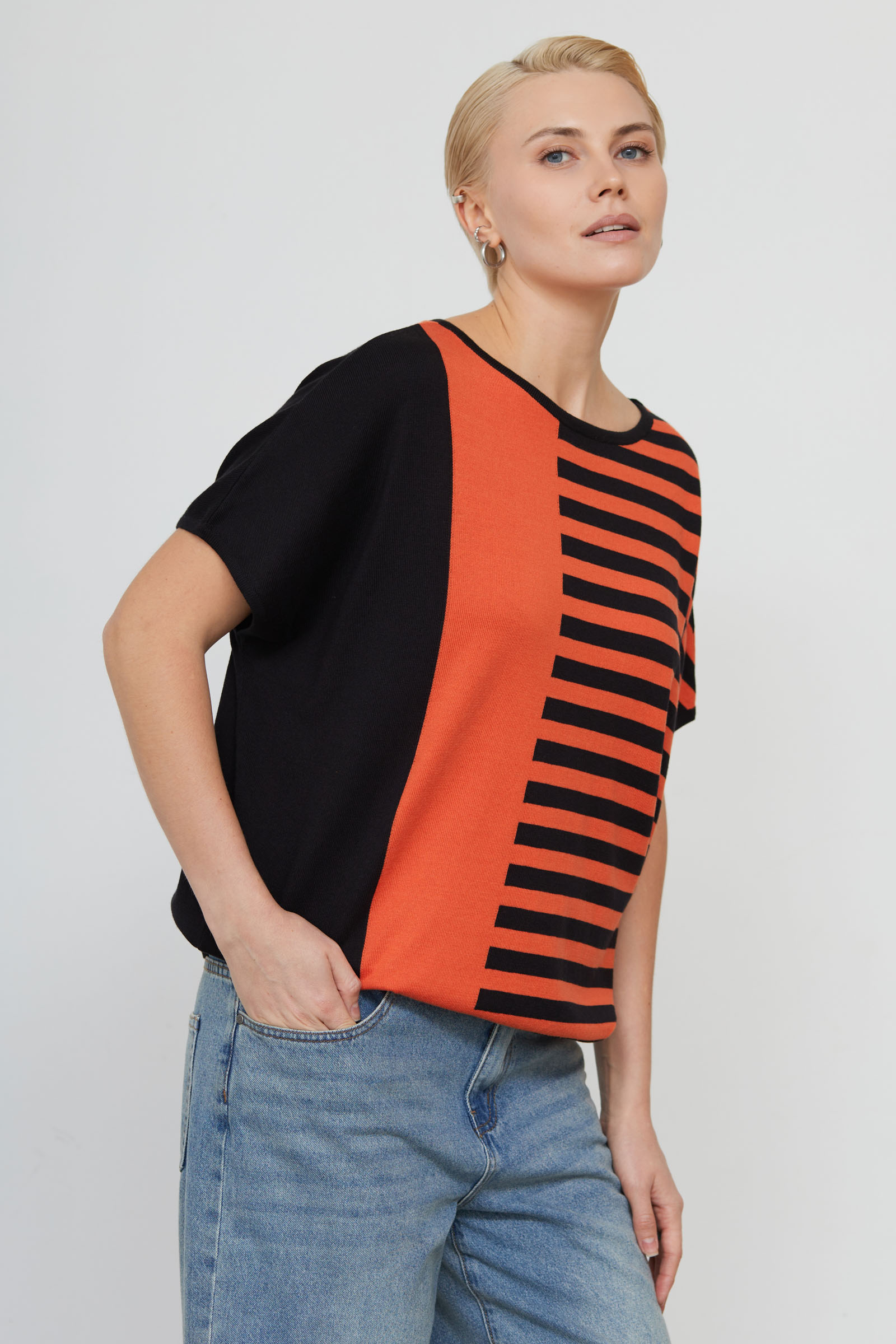 Джемпер oversize из тонкого трикотажа жаккардовой вязки с контрастным рисунком.