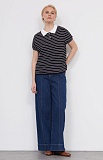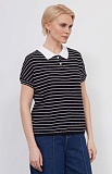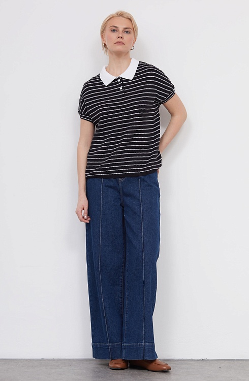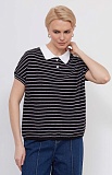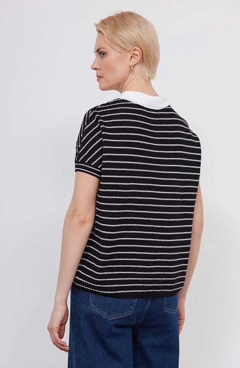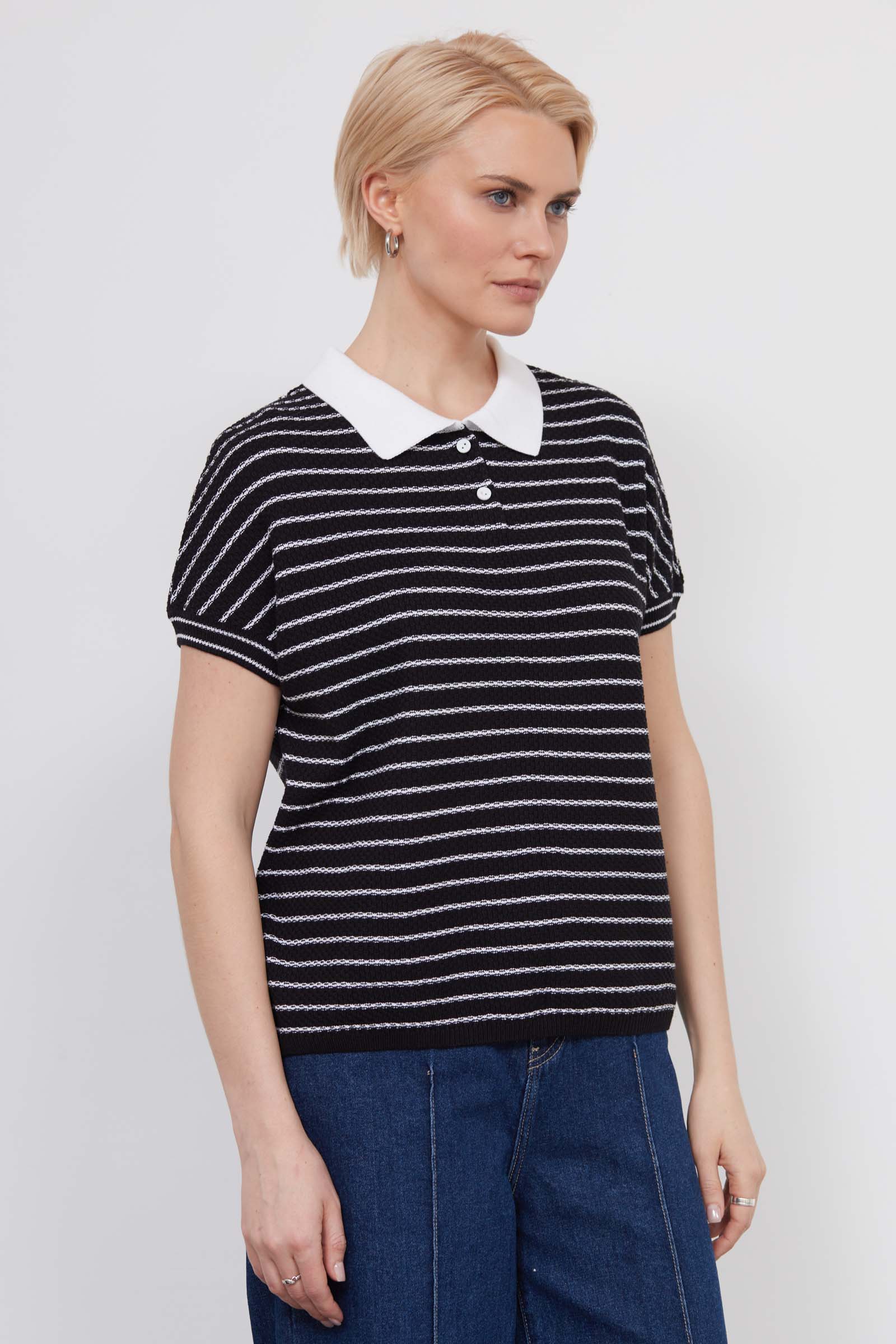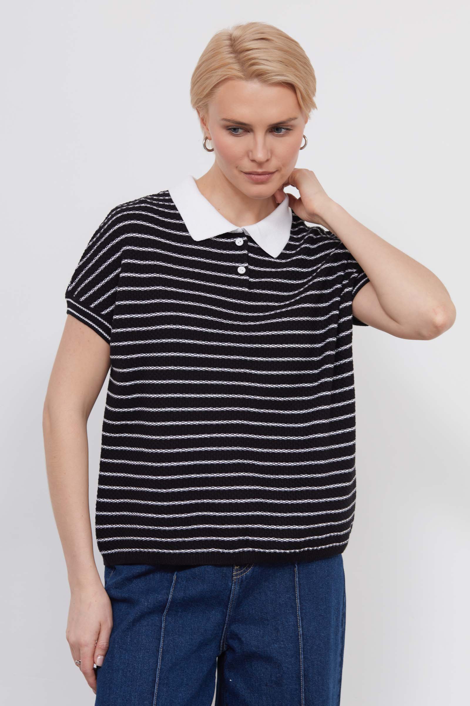 Джемпер-поло из фактурного вязаного трикотажа в полоску.