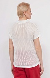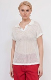 Джемпер-поло из вискозного трикотажа ажурной вязки с короткими рукавами.