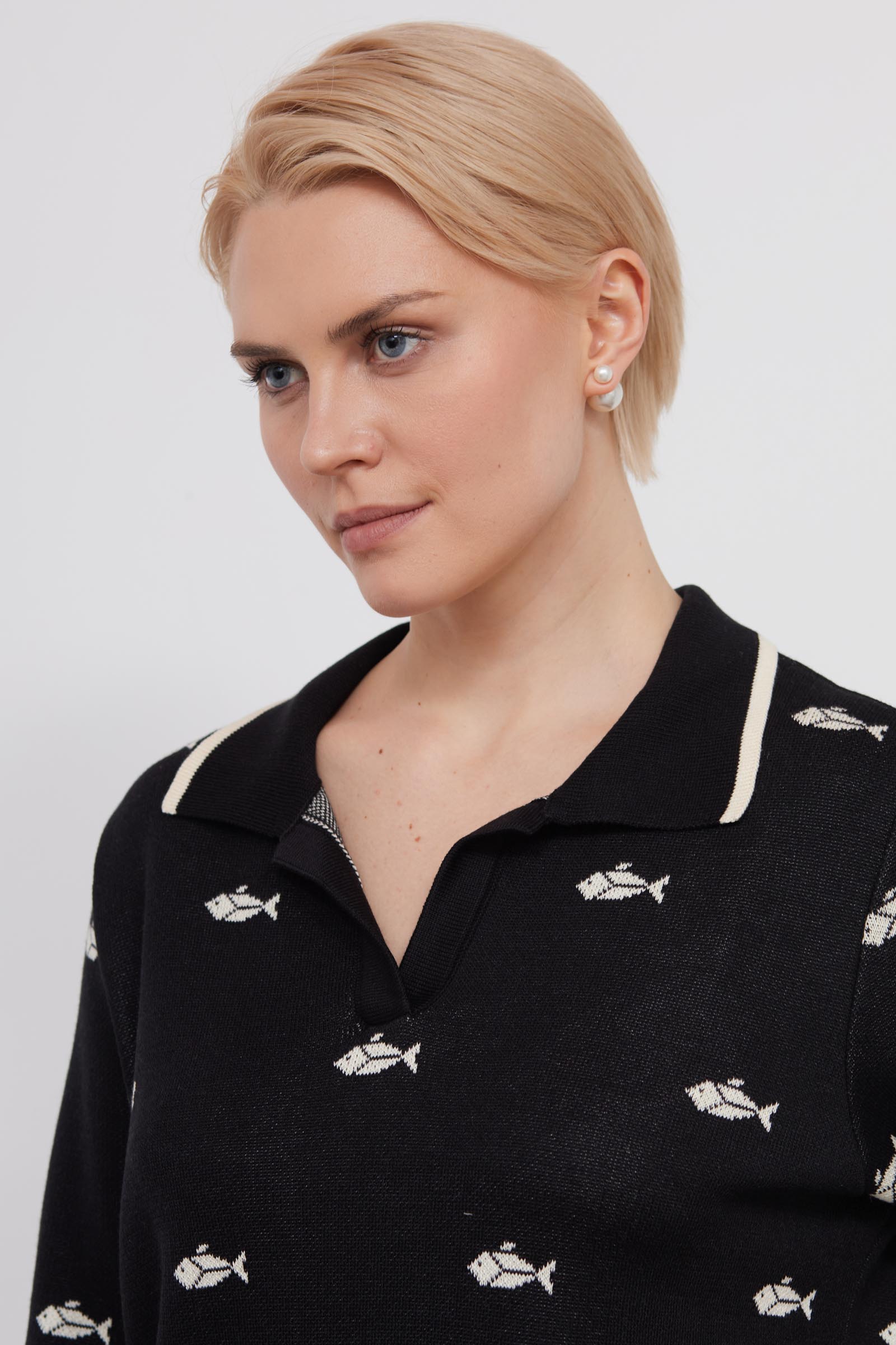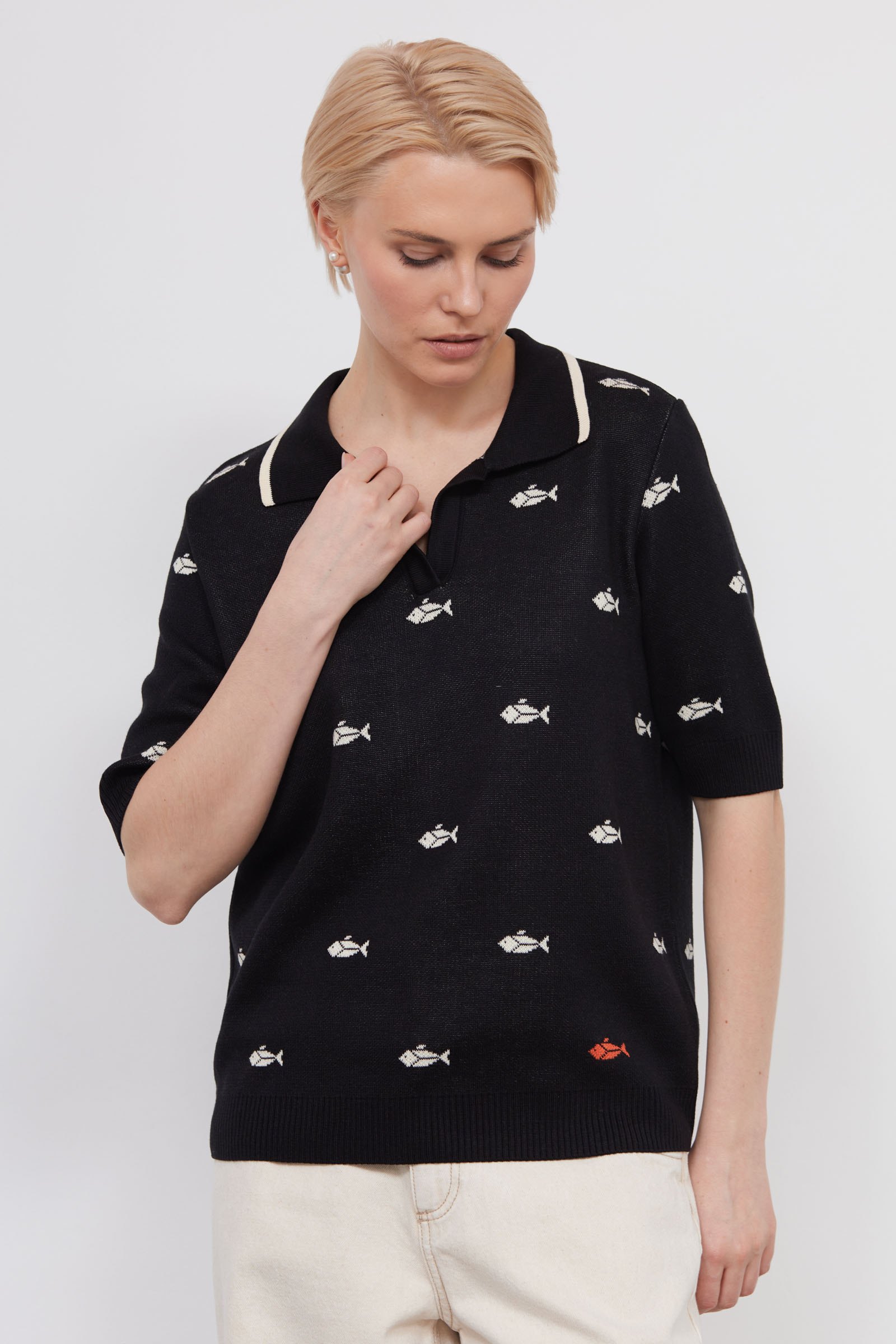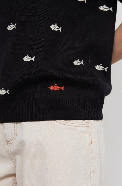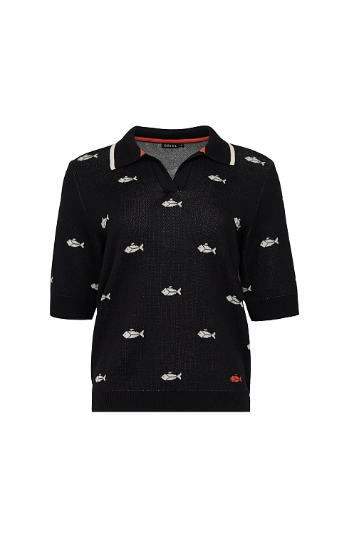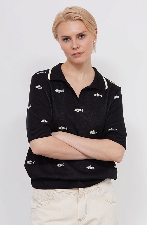 Джепер-поло из мягкого трикотажа жаккардовой вязки.