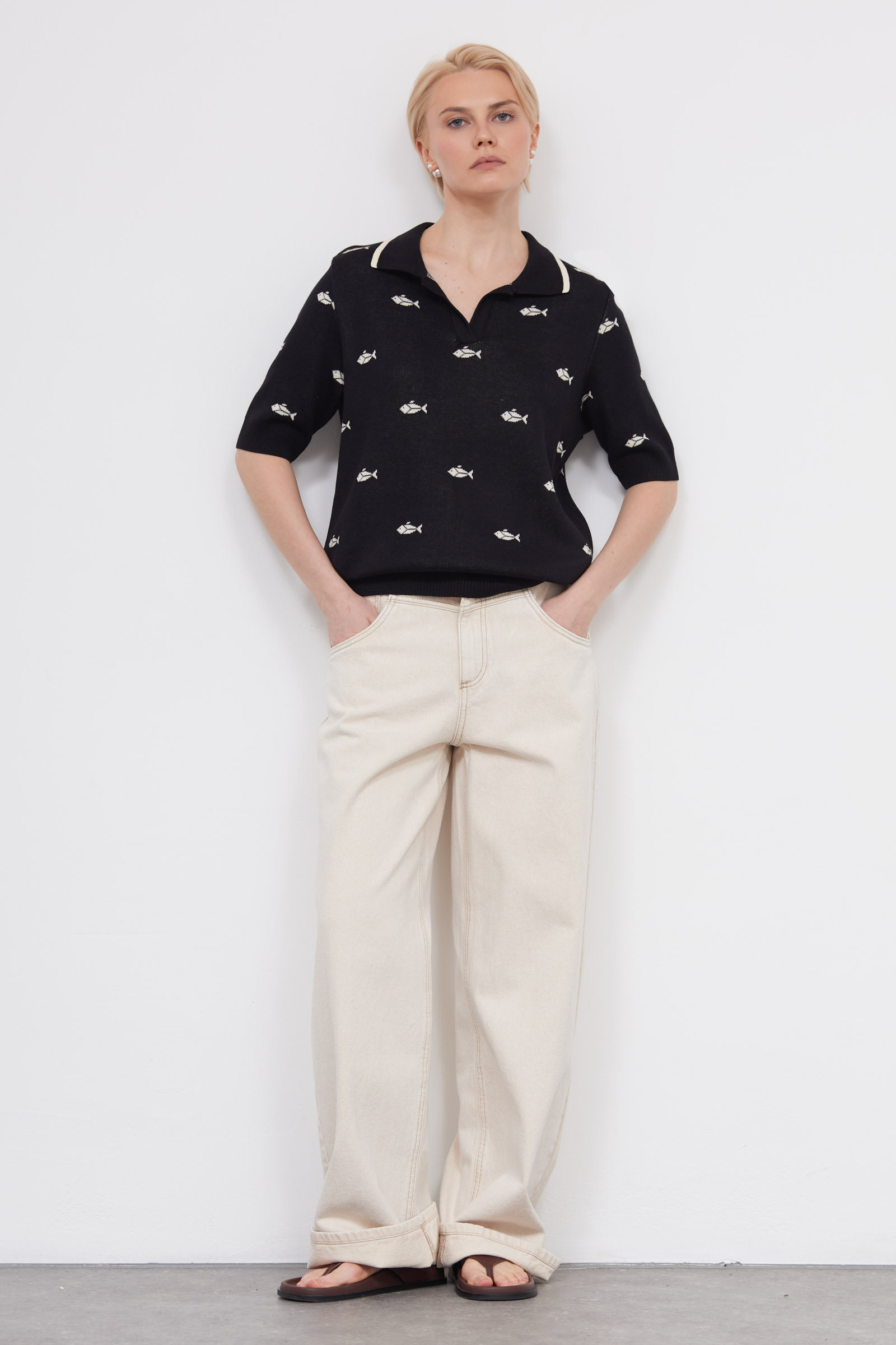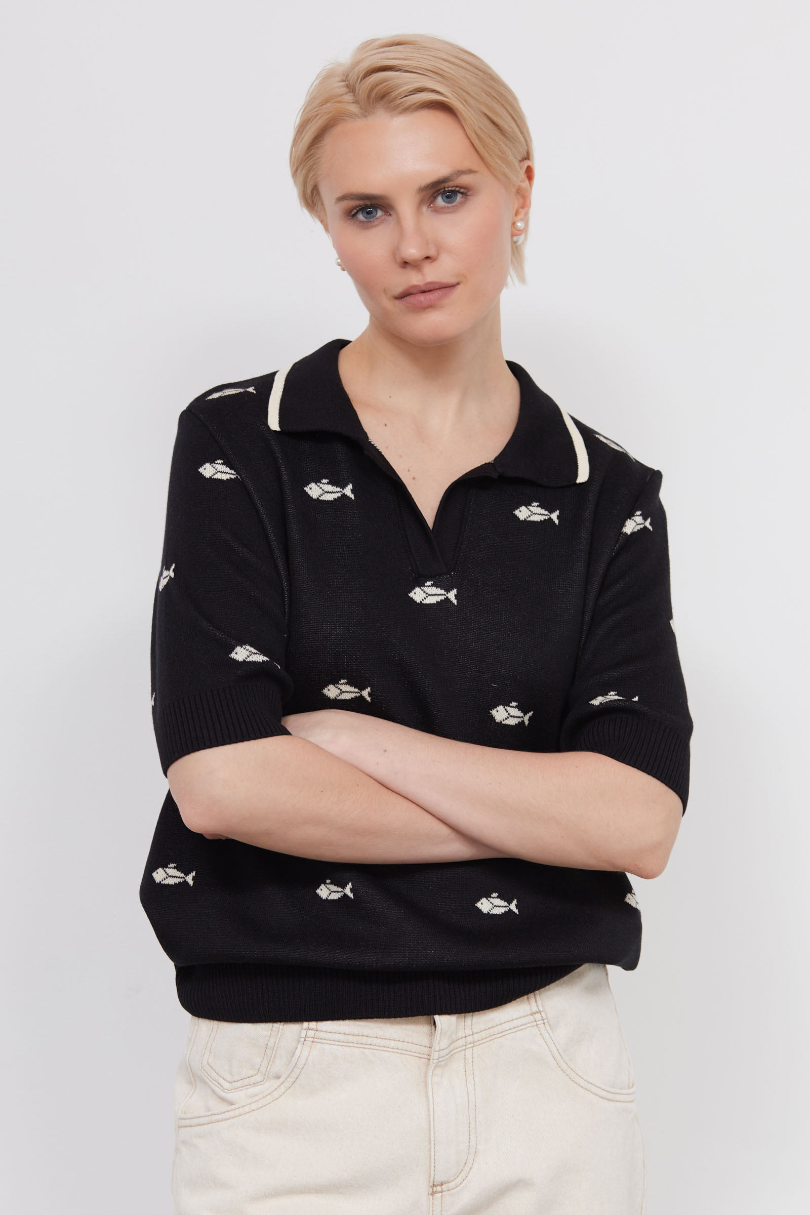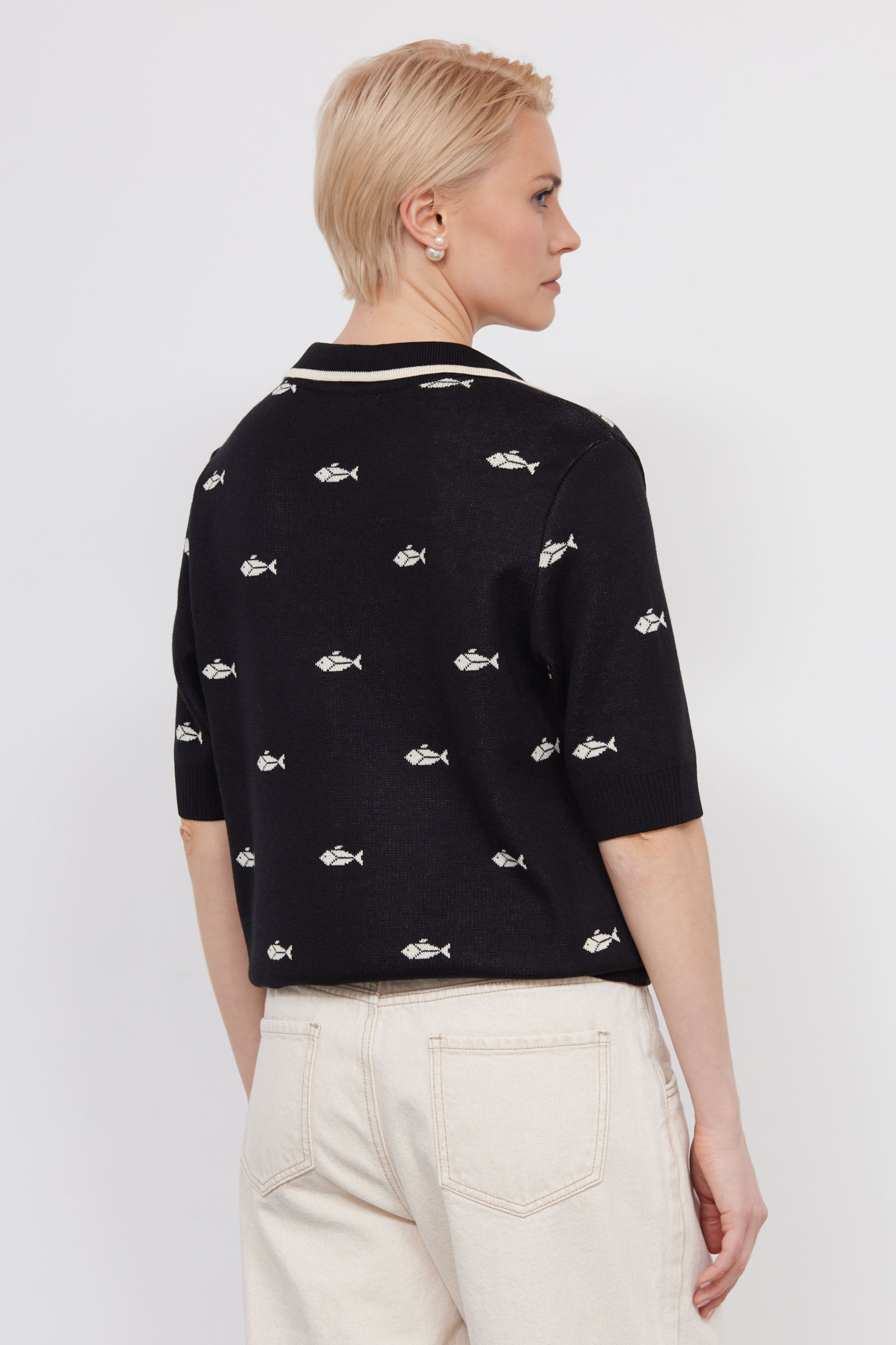 Джепер-поло из мягкого трикотажа жаккардовой вязки.