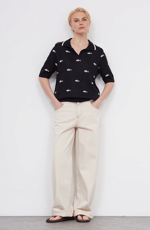 Джемпер-поло жаккардовой вязки