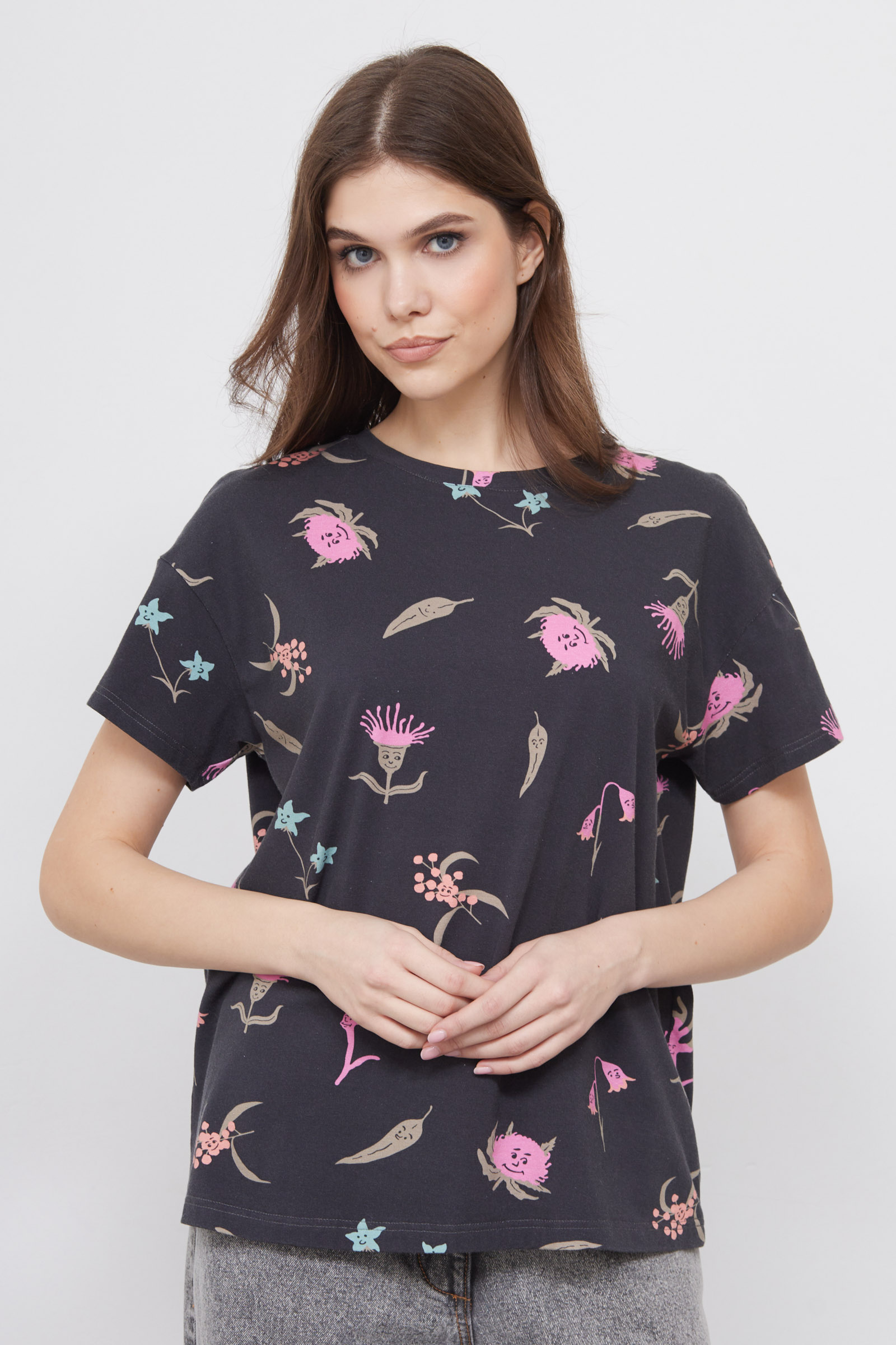 Футболка из мягкого хлопкового трикотажа с фантазийным принтом.